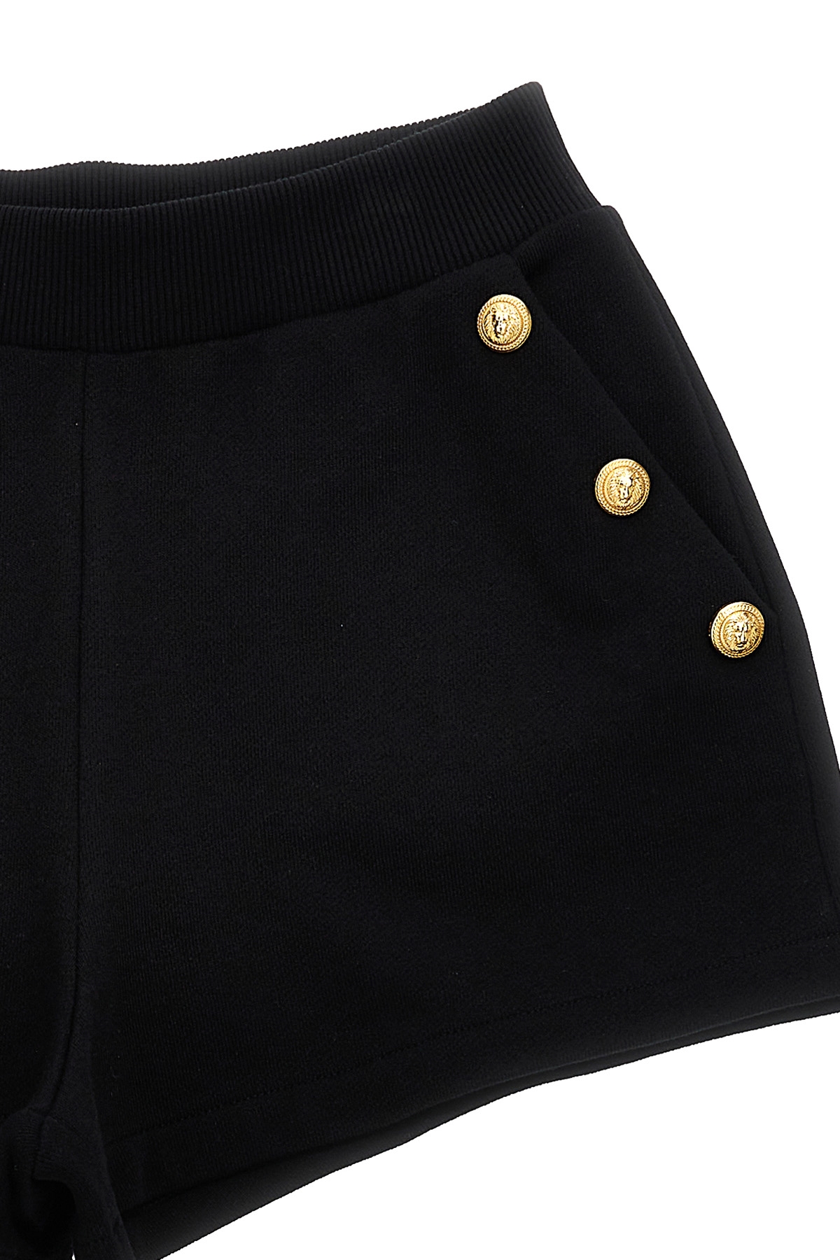 KIDS Brushed cotton shorts with front 'Leone Catena' buttons, elastic waistband, pockets.