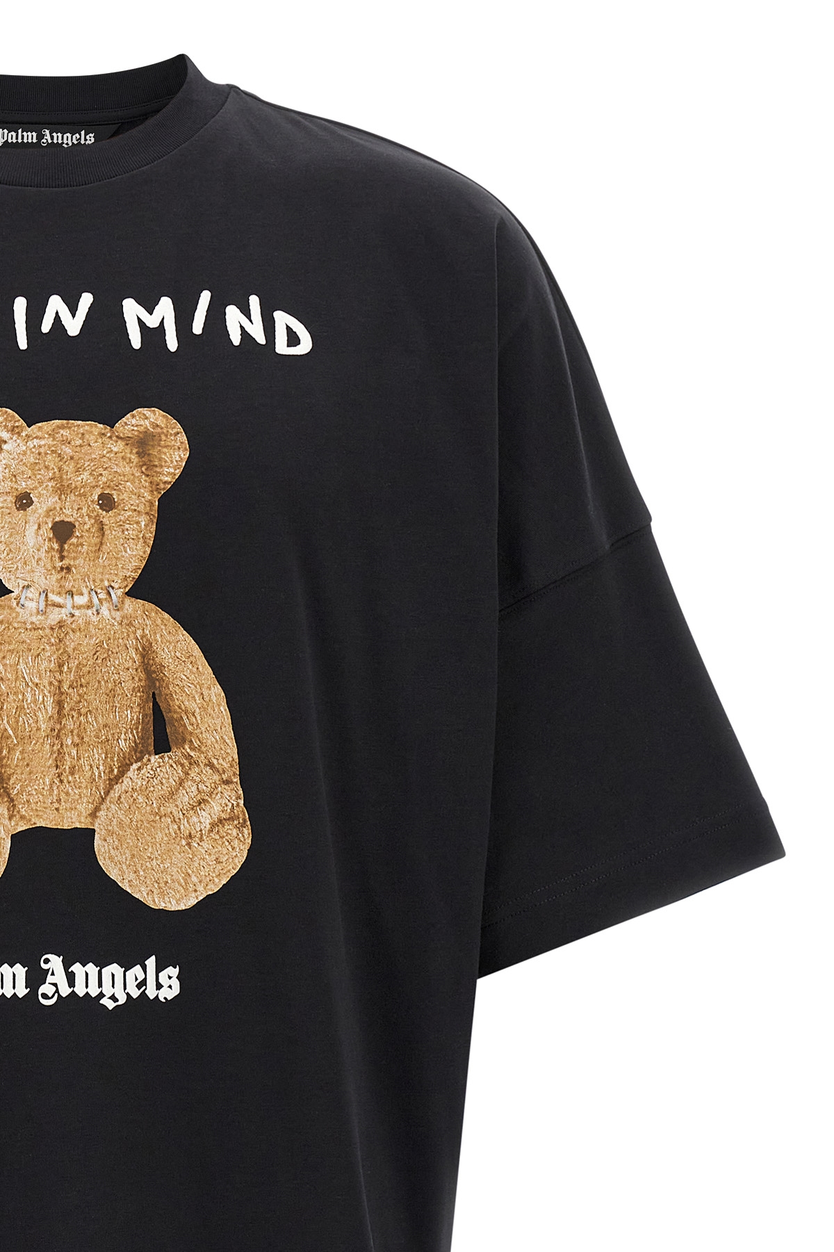 Cotton crew neck T-shirt with front 'Bear In Mind' print, short sleeves and dropped shoulders.