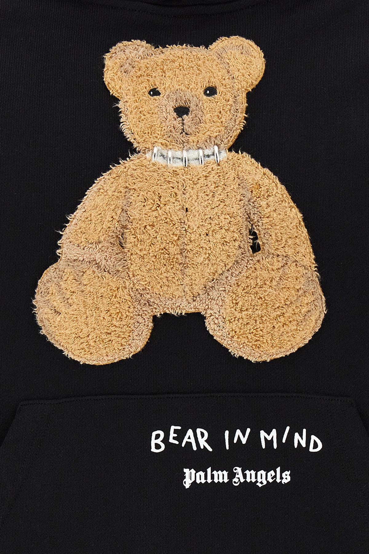 Brushed cotton hoodie with front 3D 'Bear In Mind' patch and logo print, kangaroo pocket, long cuffed sleeves and dropped shoulders.