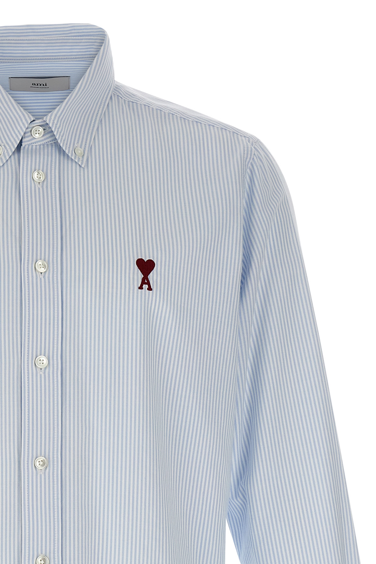 Oxford striped cotton shirt, front 'Ami De Coeur' embroidery, button down model, button closure, long cuffed sleeves.