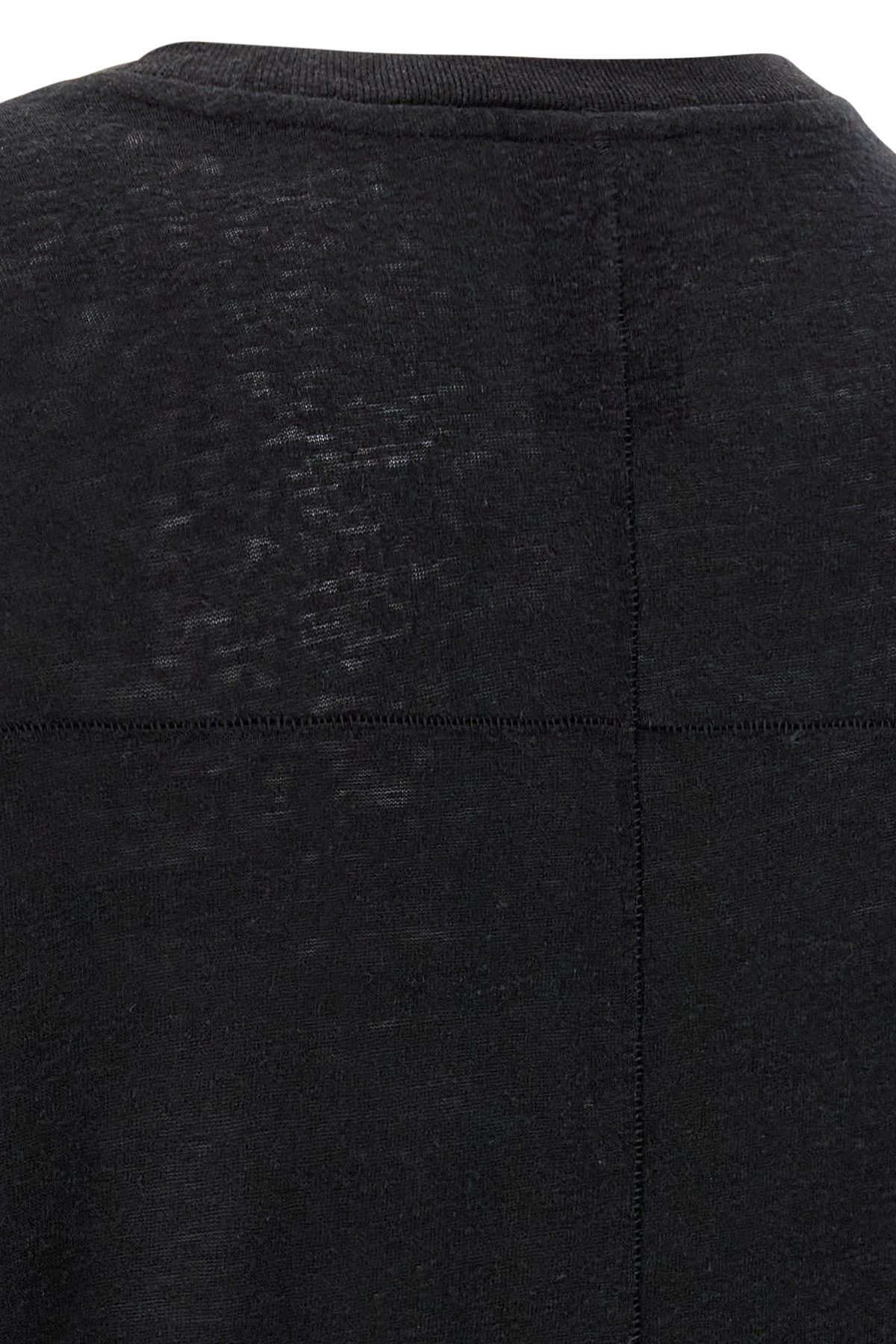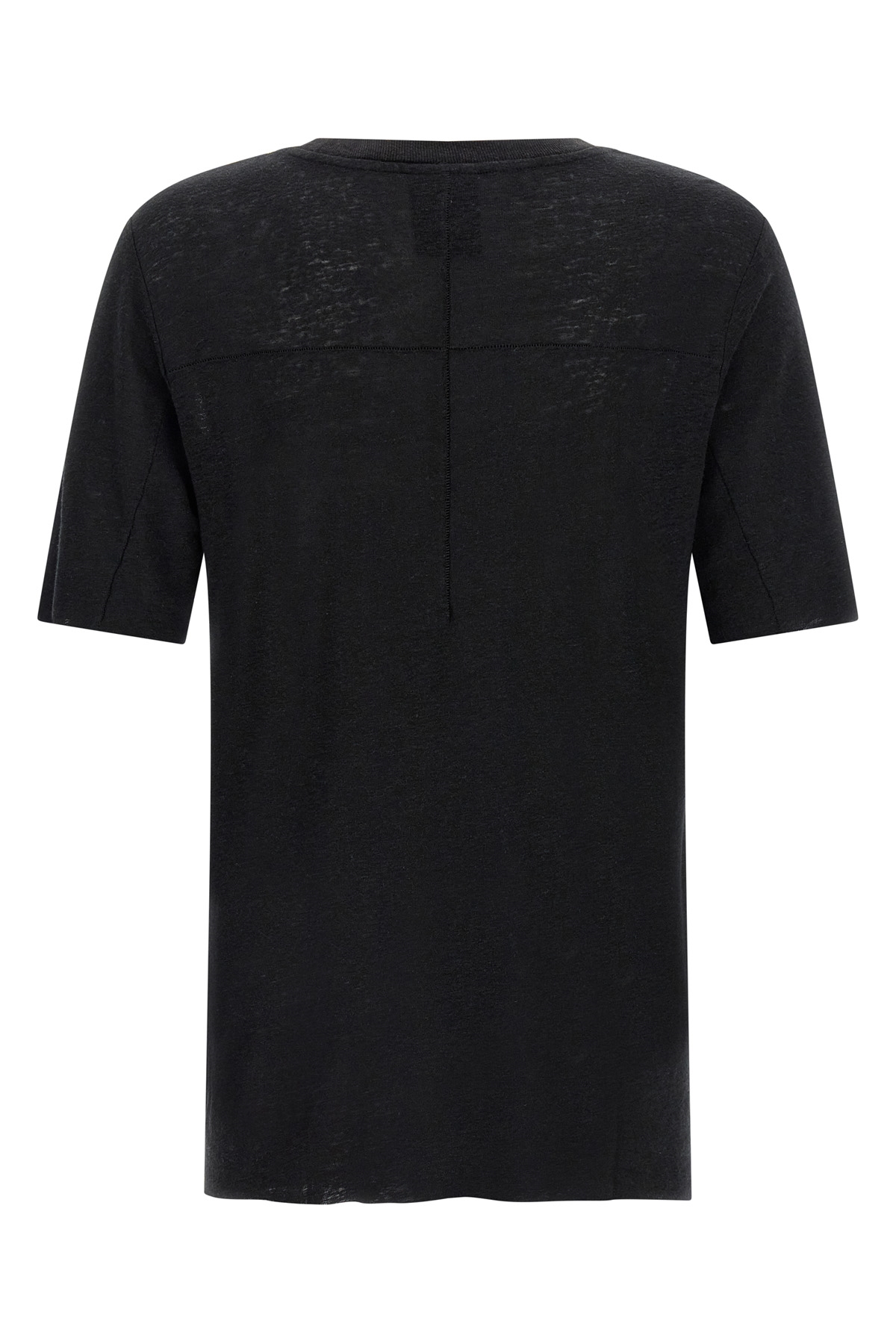 'M TS 831' linen and viscose blend crew neck t-shirt with short sleeves, scar stitching on the front and back, raw cut hem.