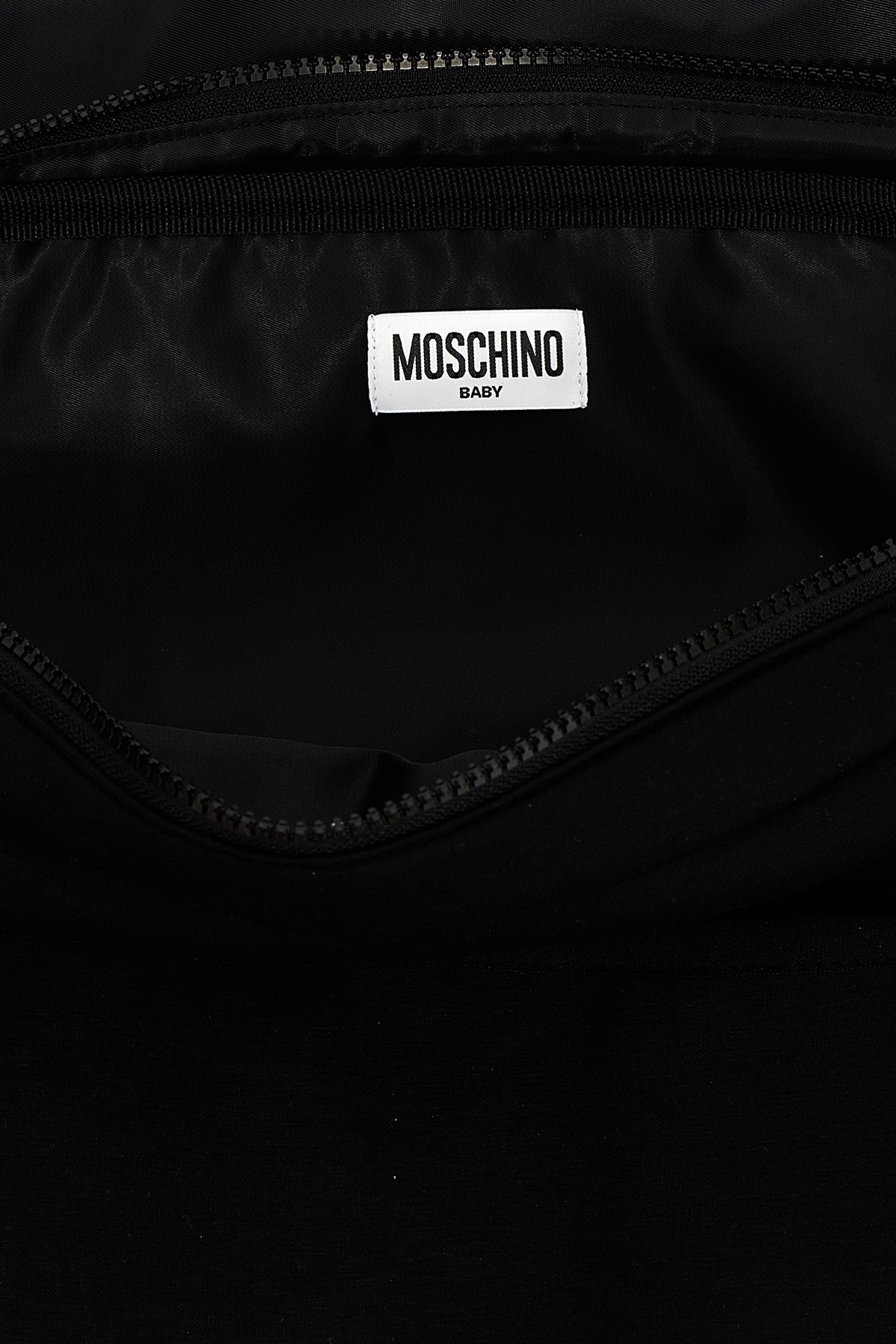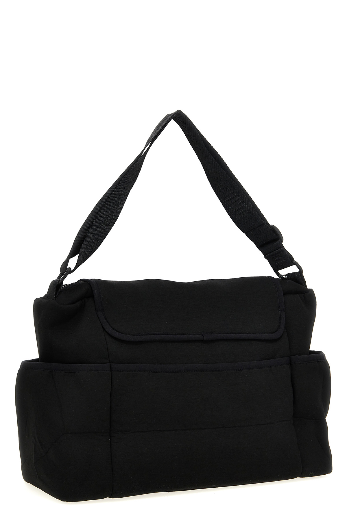 Cotton blend changing bag with 'Teddy' logo print, top flap closure with buckle and zip, adjustable shoulder strap, changing table.