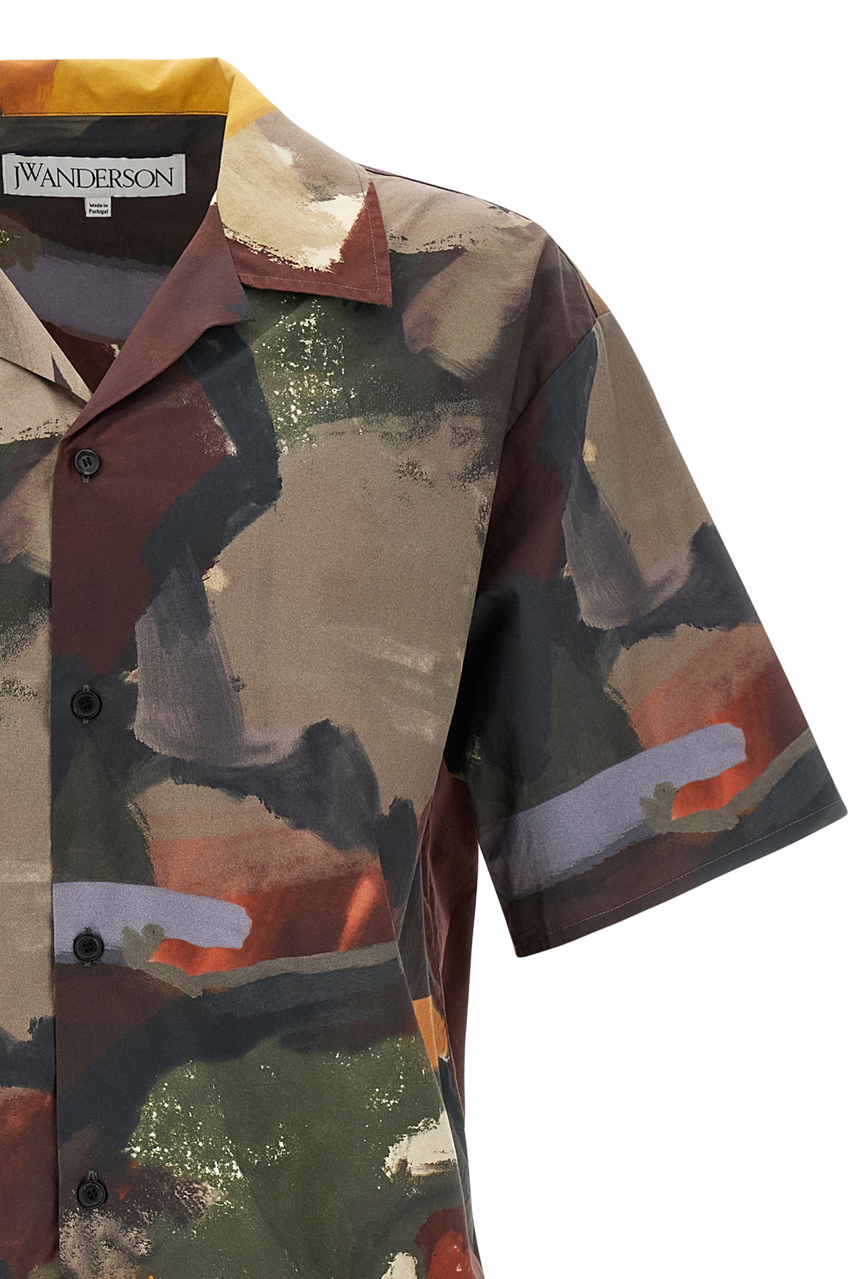 Cotton shirt with all-over abstract print, tone-on-tone Anchor JWA logo embroidery on the back, button closure, and short sleeves.