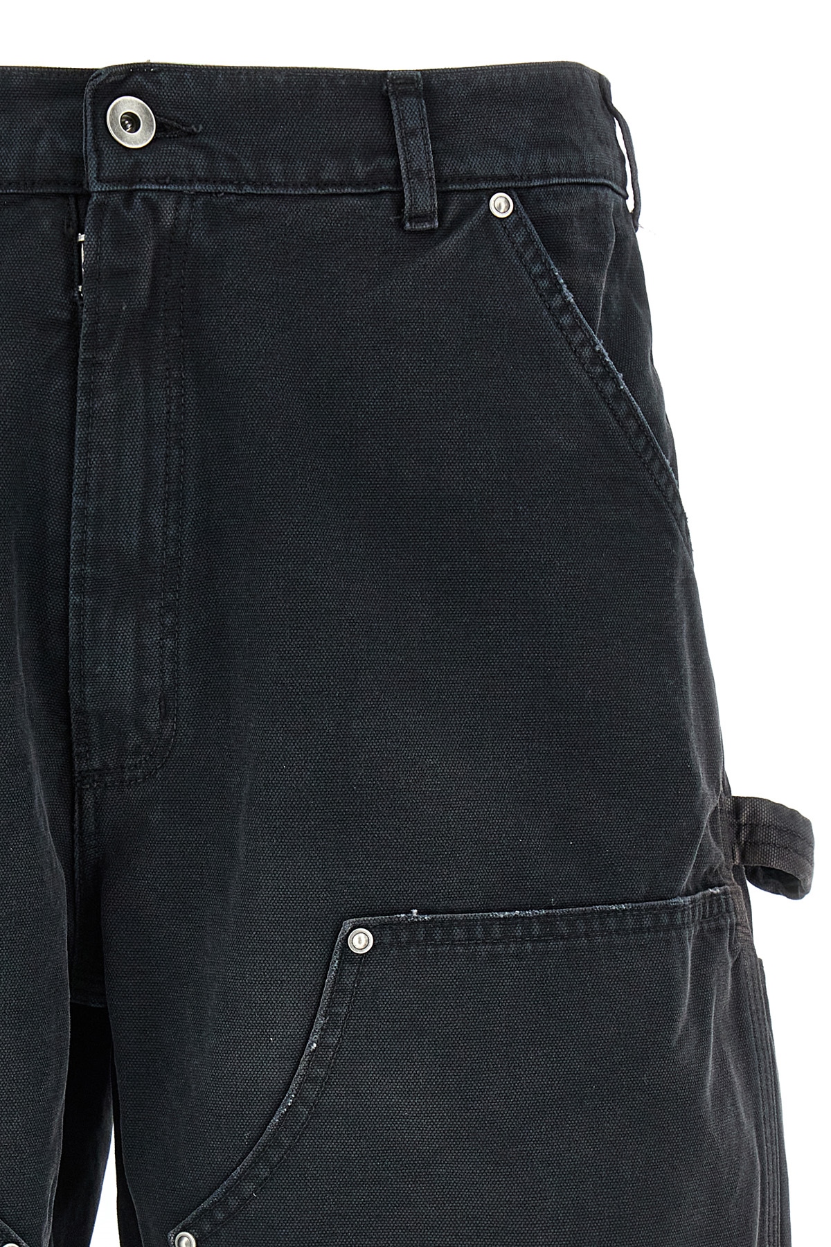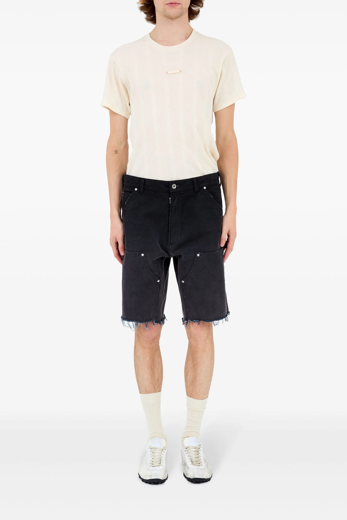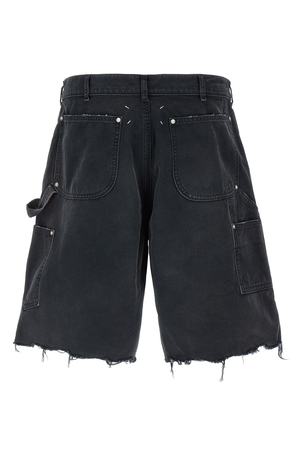 Delave cotton denim bermuda shorts with frayed hem and rivets, 'Four Stitches' at the back, pockets, zip and button closure.