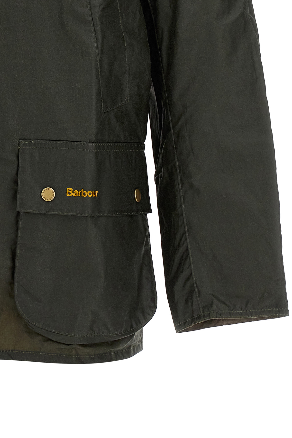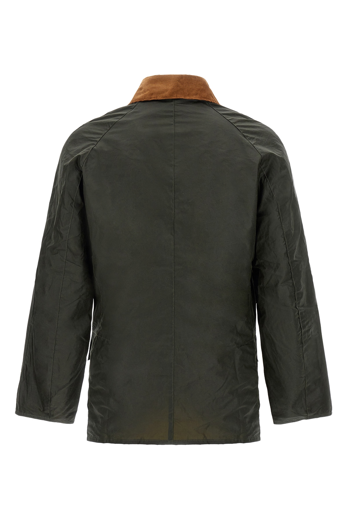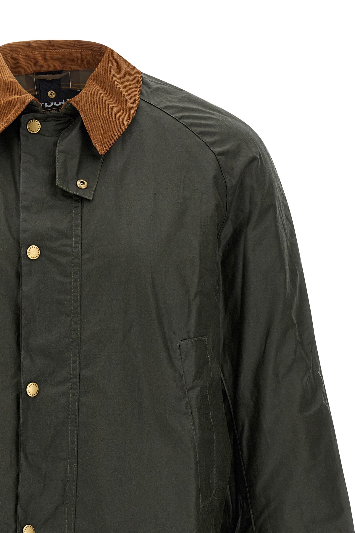 Ashby waxed cotton jacket with corduroy collar, zip and snap button closure, pockets, long sleeves.