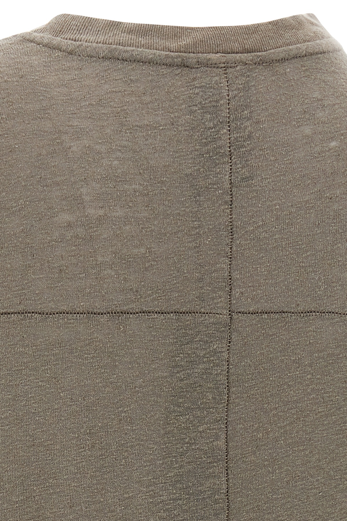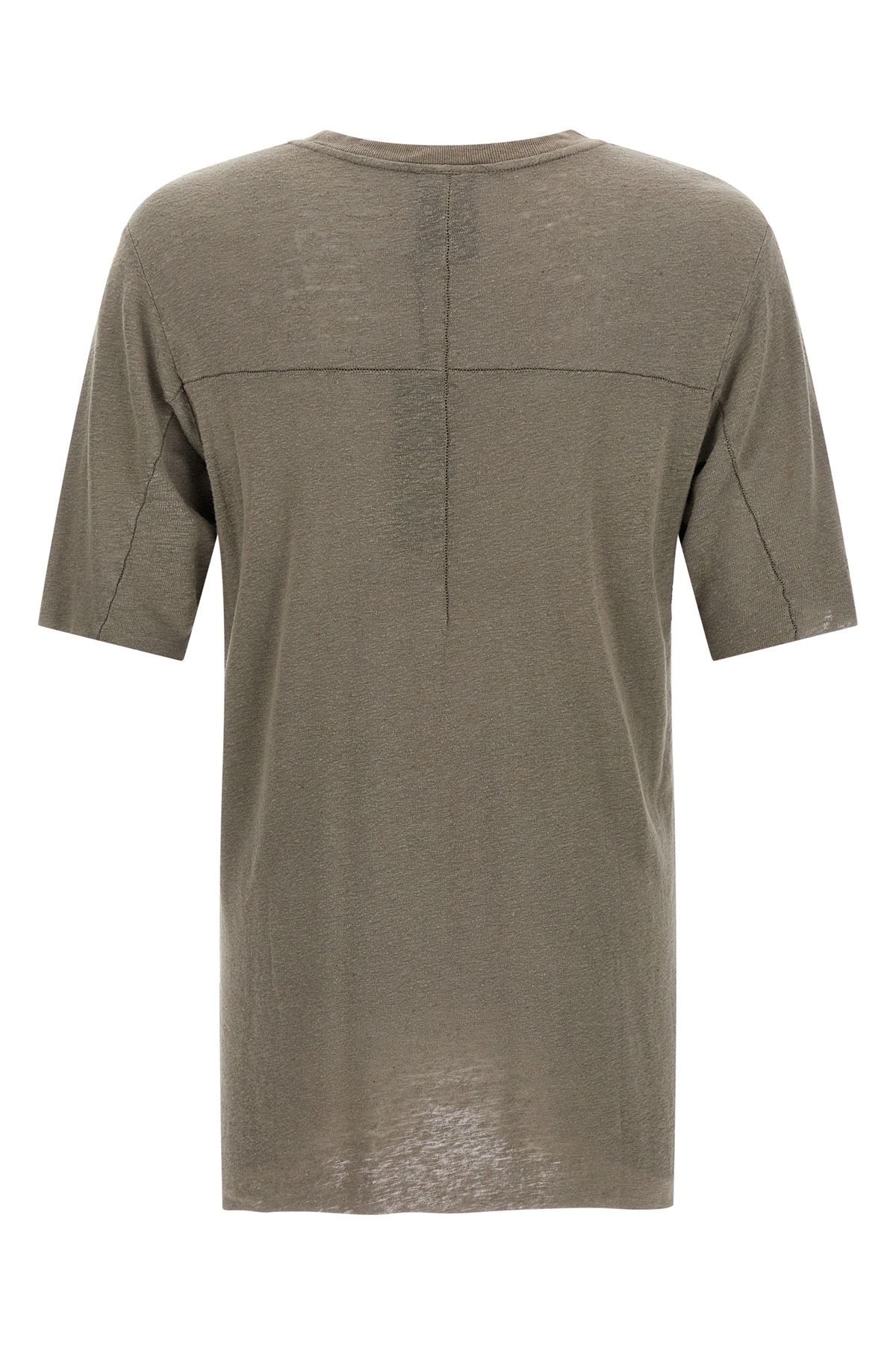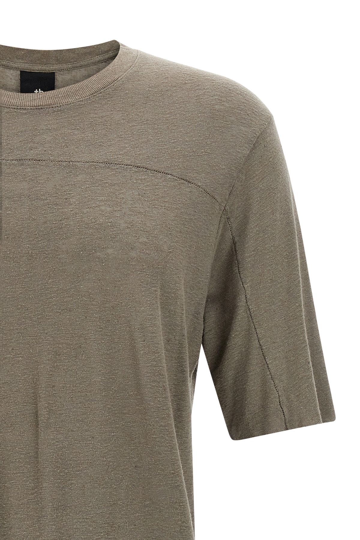 'M TS 831' linen and viscose blend crew neck t-shirt with short sleeves, scar stitching on the front and back, raw cut hem.