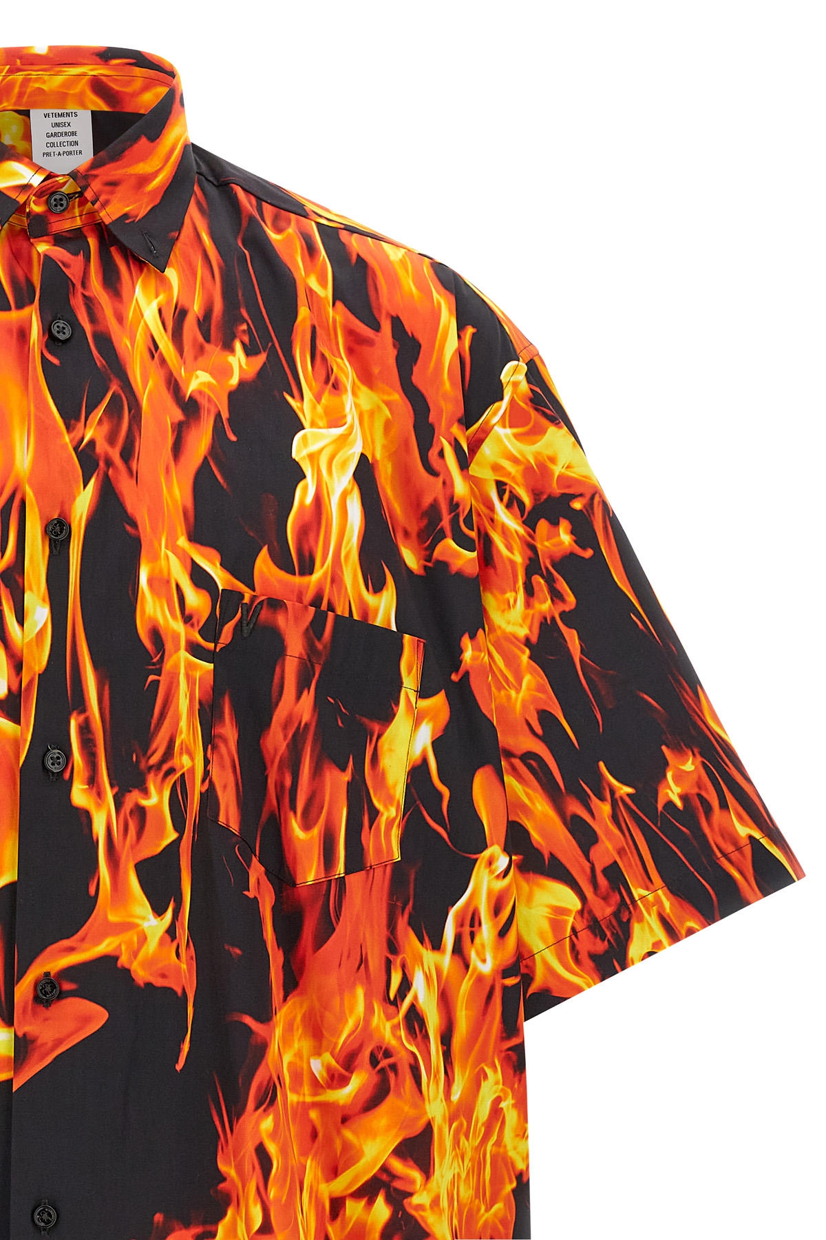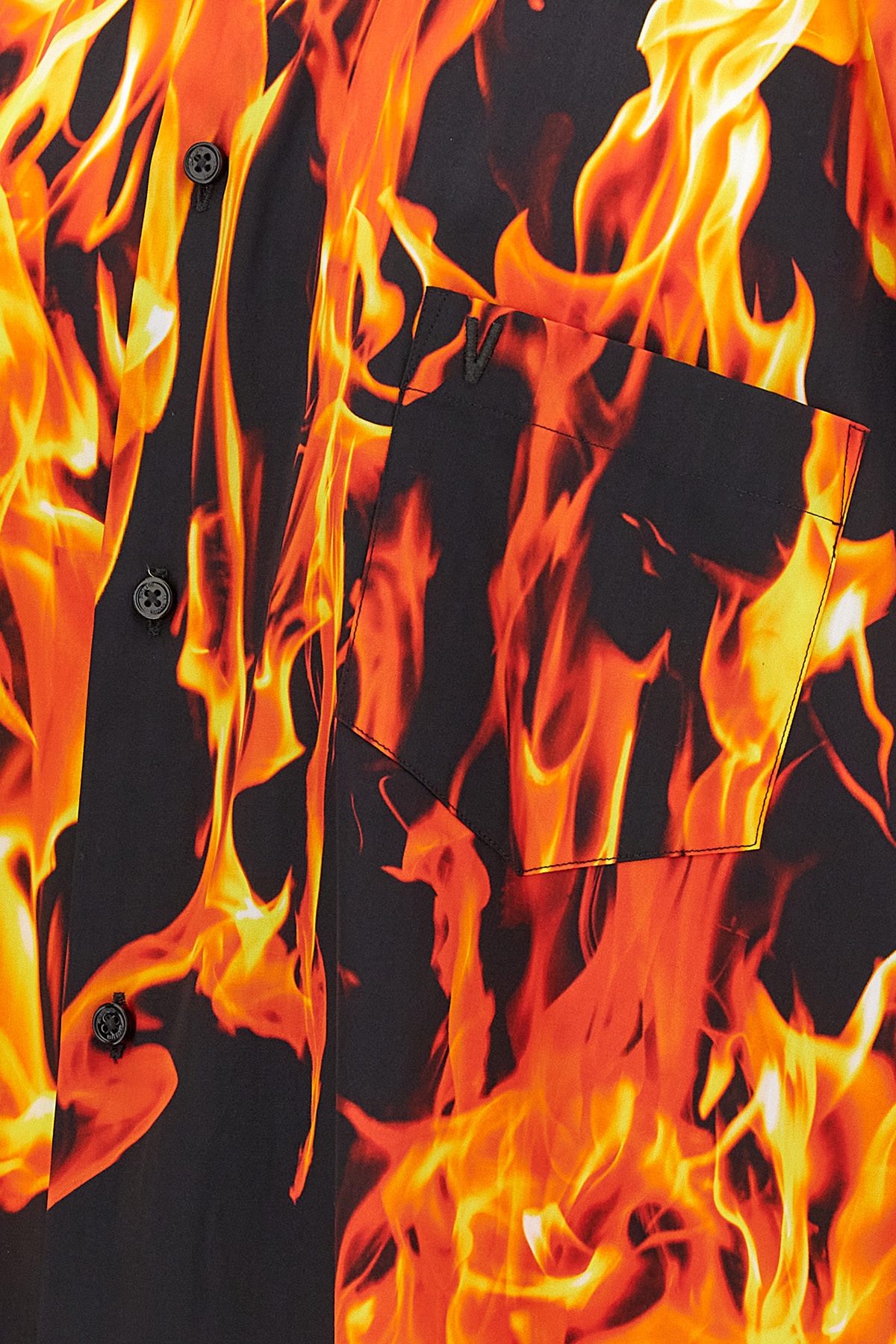 Cotton shirt with 'Black & Orange Fire' graphic print, button down model, pocket, button closure, short sleeves.