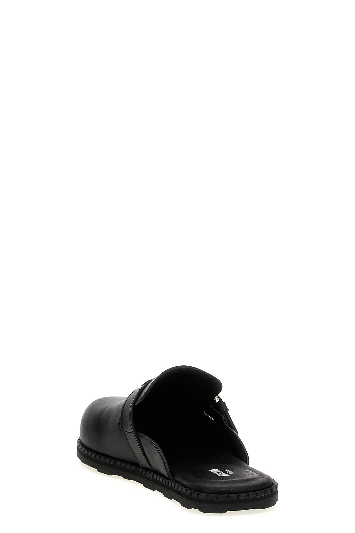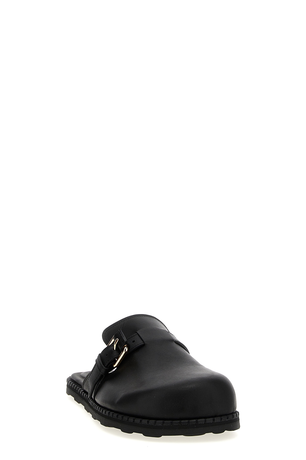 'Birky' leather sabots, adjustable strap, metal details, rubber sole.