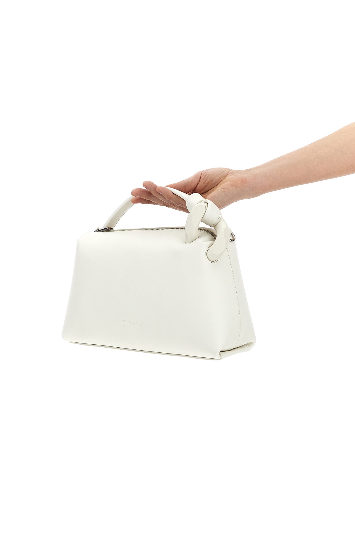 'JWA Corner' leather handbag with zip closure, fixed handle with tone-on-tone chain detail, removable leather shoulder strap.
