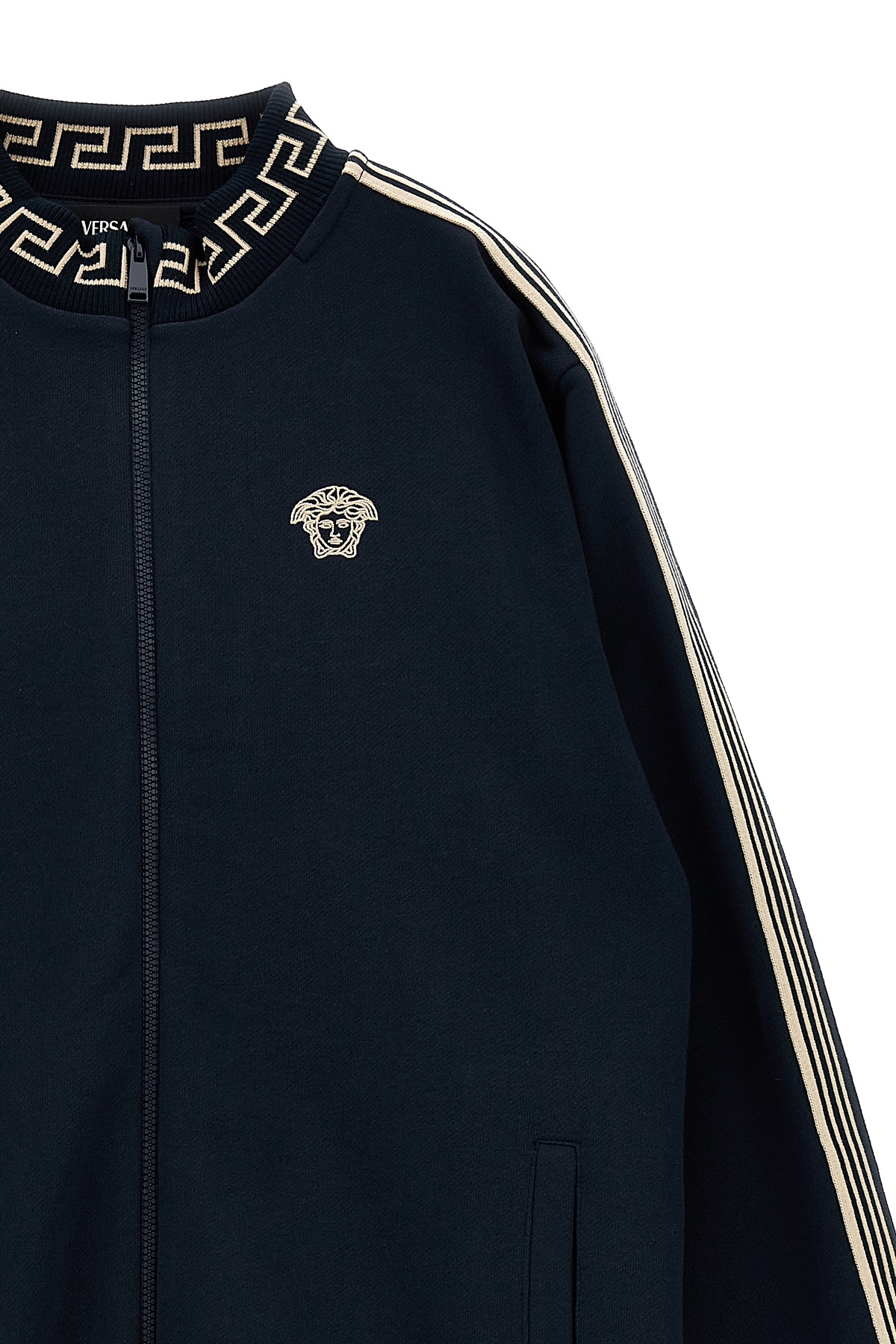 KIDS Brushed cotton sweatshirt with contrast details, front Medusa embroidery, high neck knit with 'Greca' jacquard, zip closure, pockets, long cuffed sleeves.