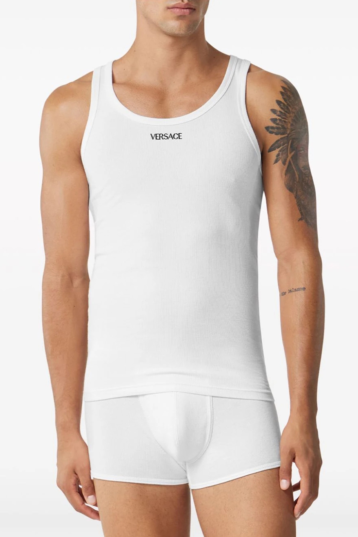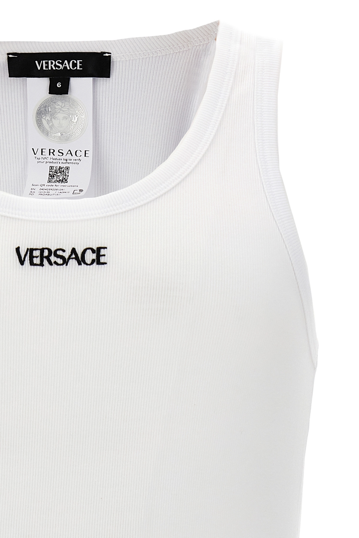 Stretch ribbed cotton tank top with logo embroidery on the front and round neckline.