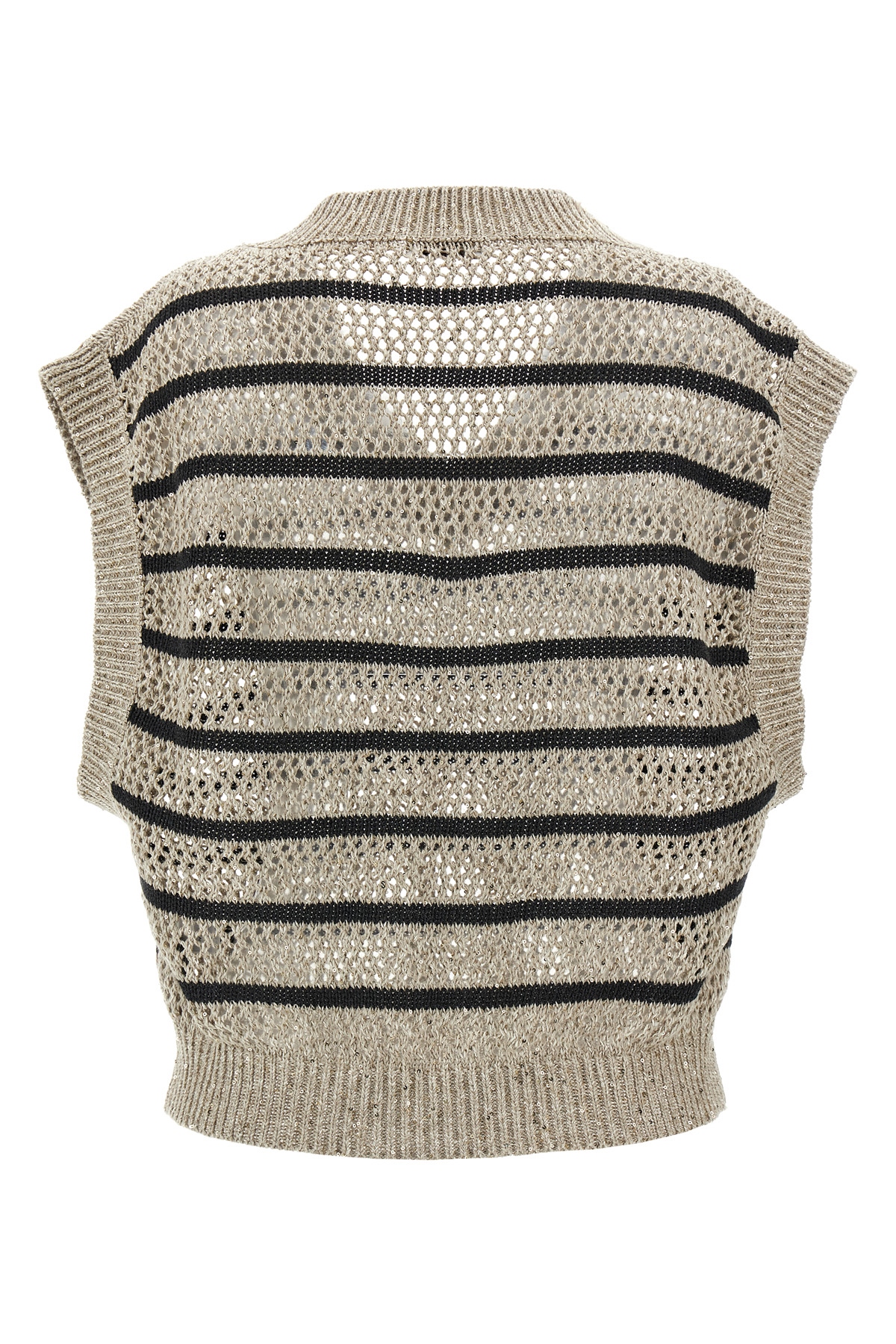 Linen Dazzling Ribbed Net knit T-shirt, V-neck with contrast details, short sleeves with dropped shoulders.