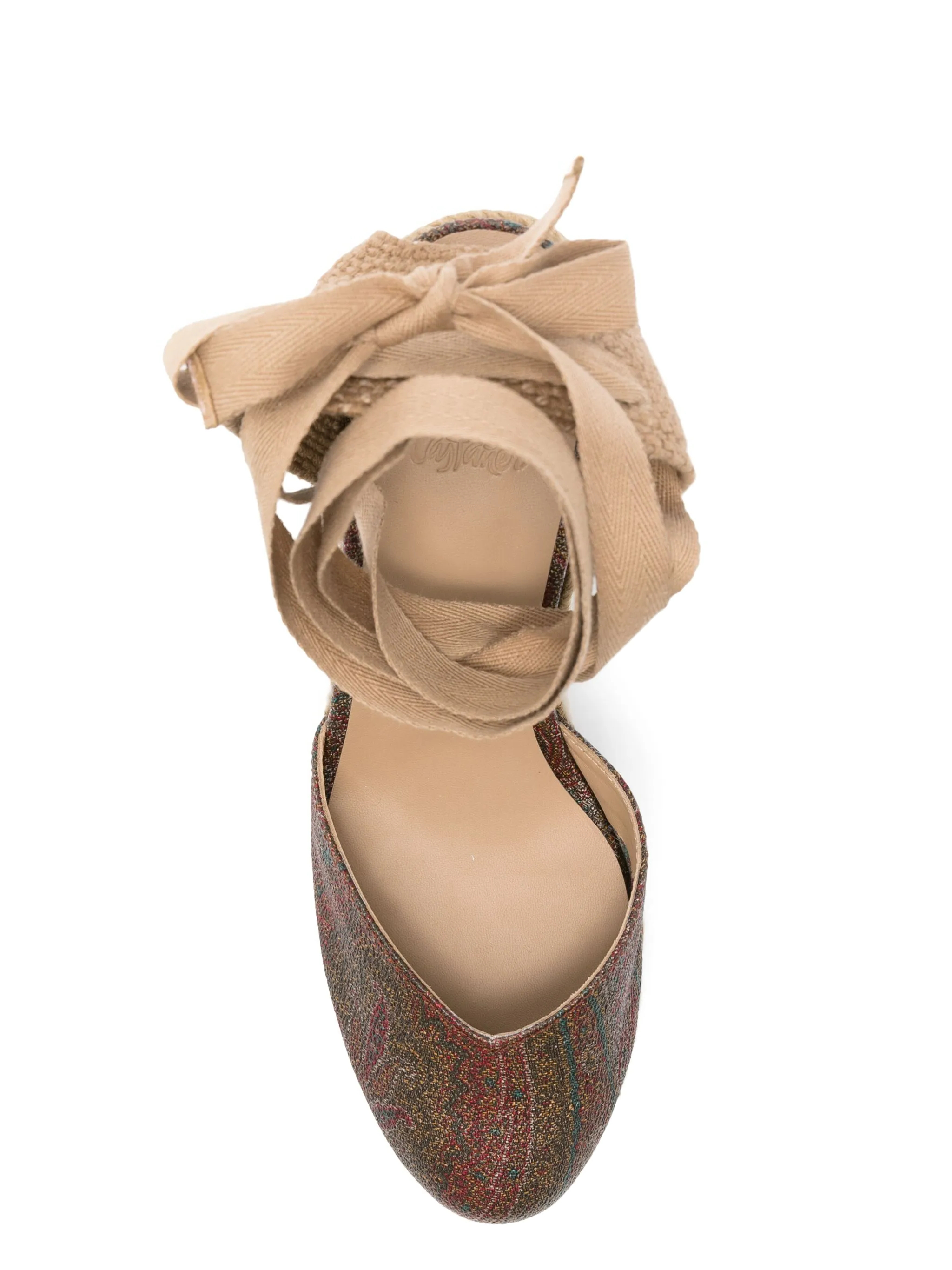 brown knot closure at the ankleLeather insole with logo high wedge heelpaisley print