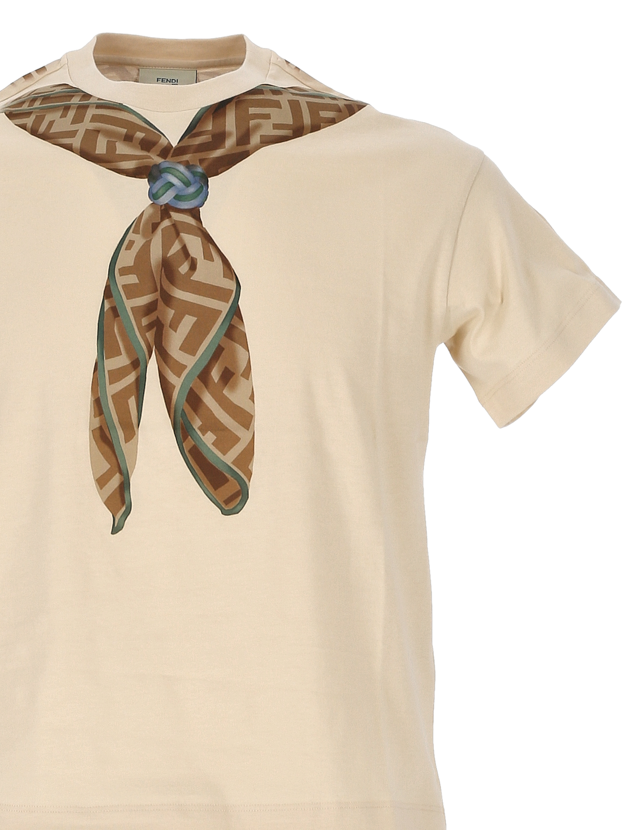 beige crew neck drop shoulder short sleeves signature FFpattern print
