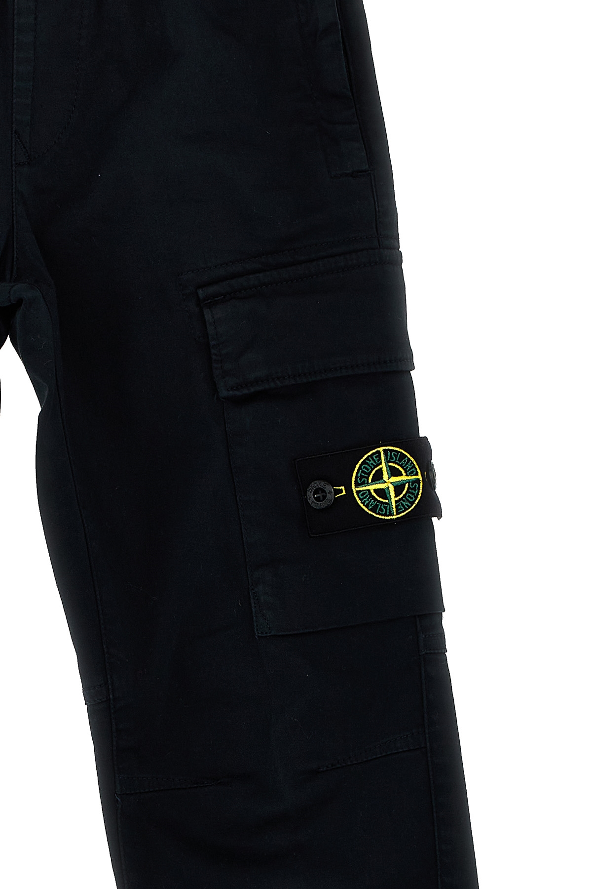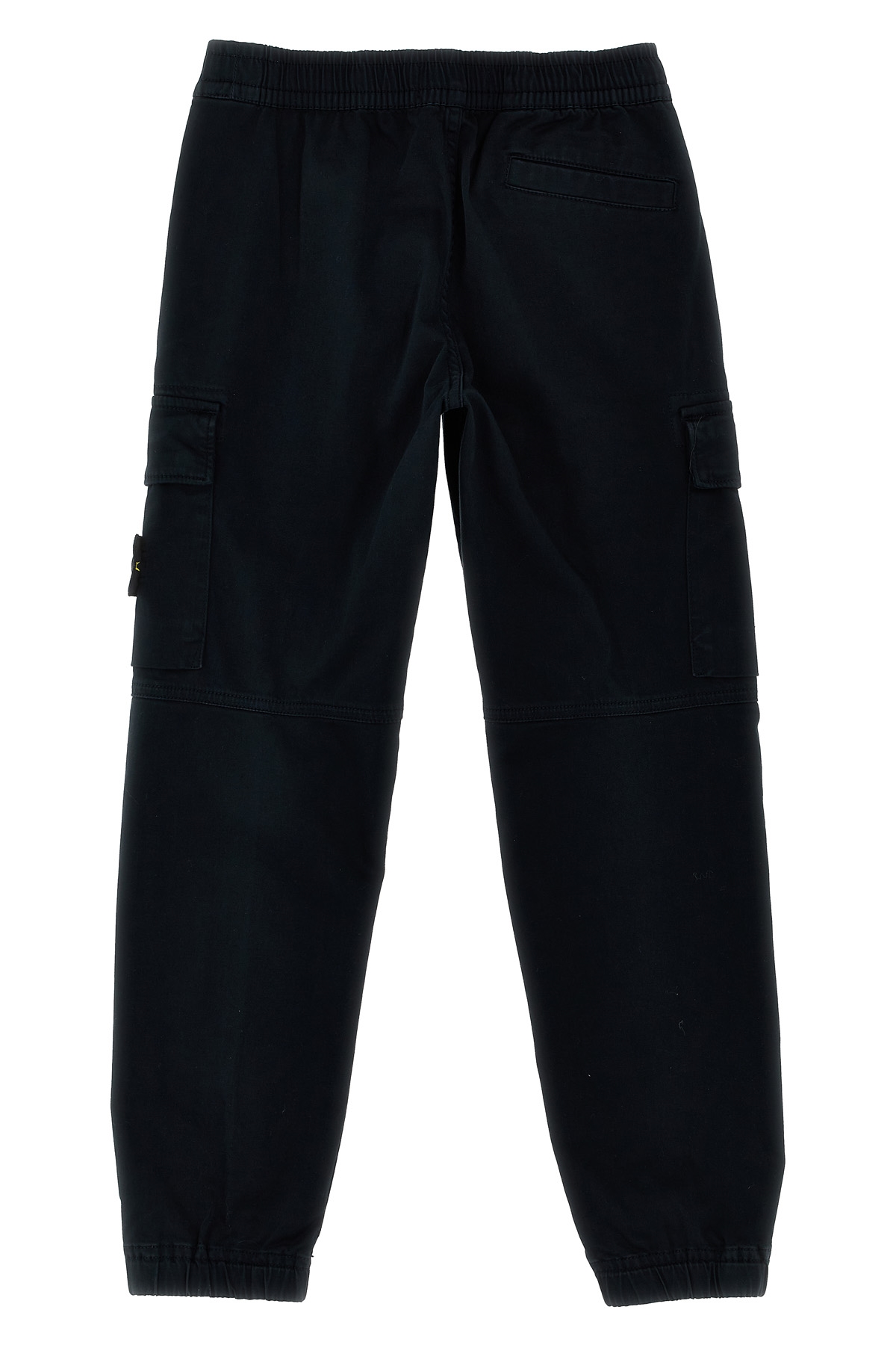 KIDS Cotton trousers, cargo style with logo badge application on the pocket, adjustable elastic and drawstring at the waist, pockets, elastic ankle cuffs. SUSTAINABLE: This product is made of organic cotton.