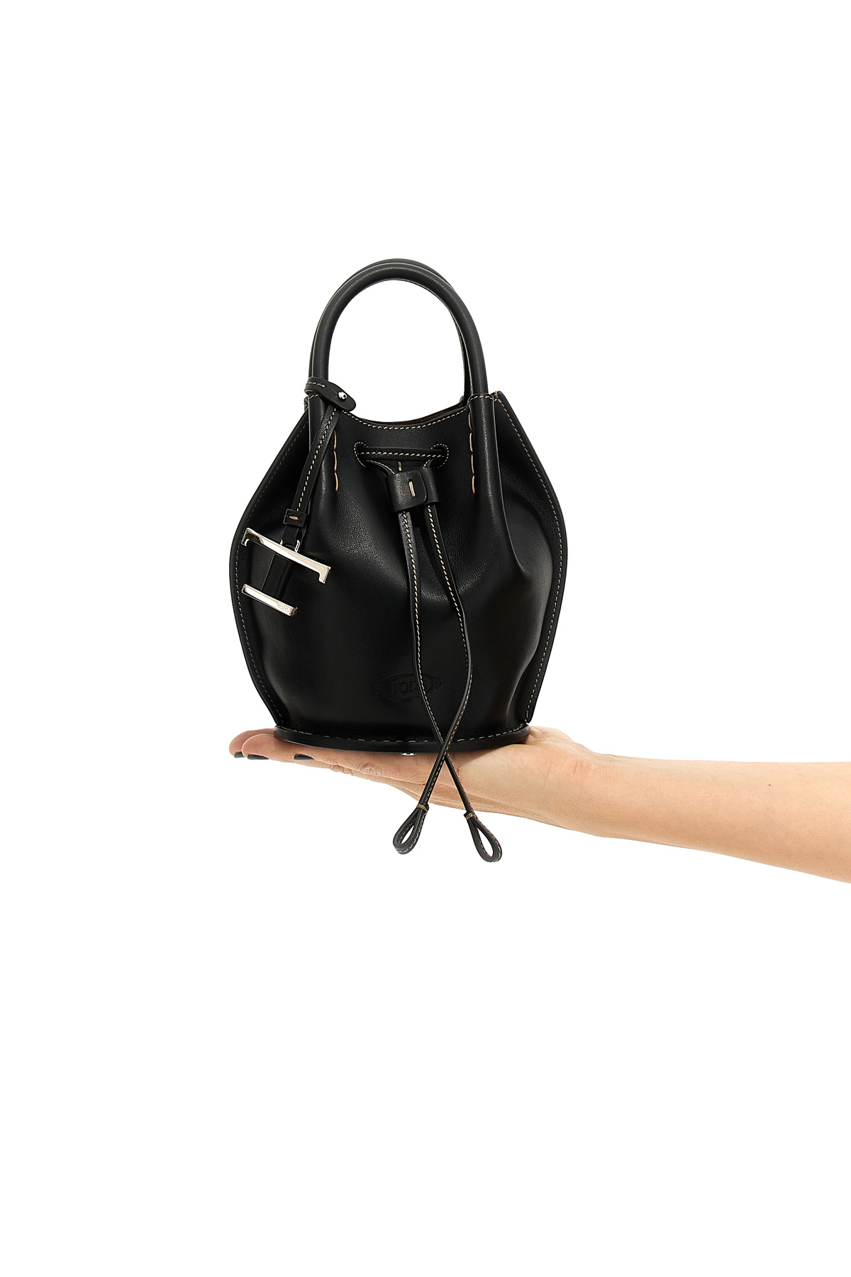 'Buz Mini' leather handbag, double fixed handle, rigid bottom with metal feet, drawstring closure, removable tag, adjustable and removable shoulder strap.