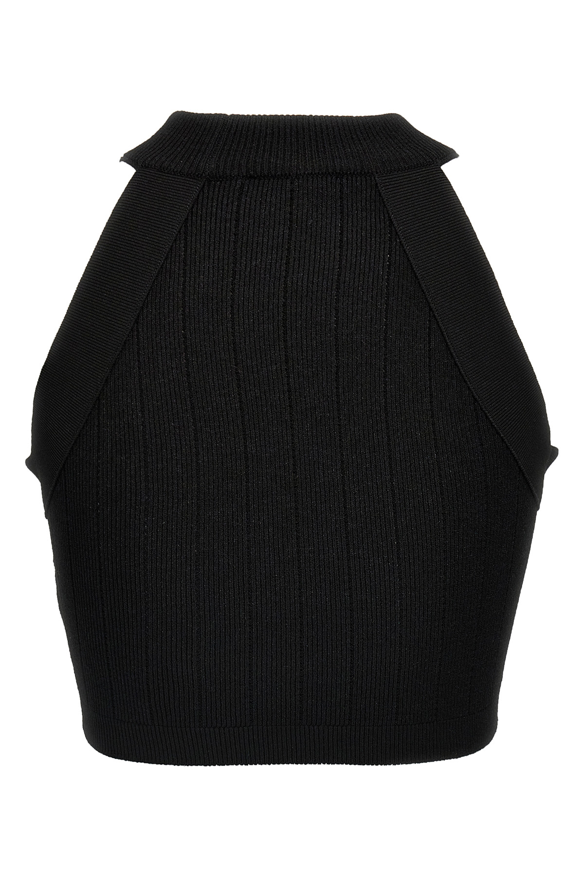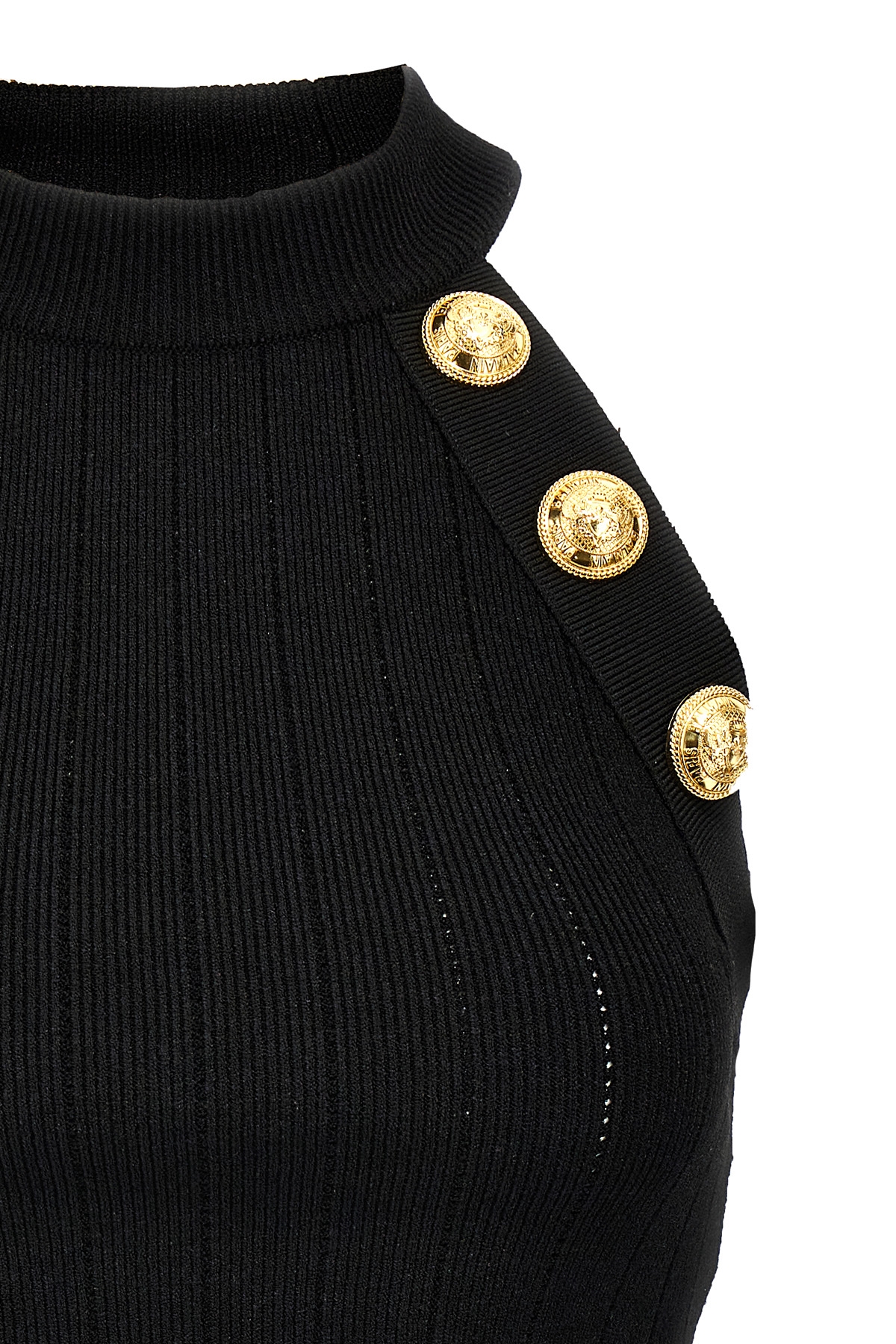 Ribbed viscose blend knit top with 'Chiocciola' logo buttons, crop model, crew neck.