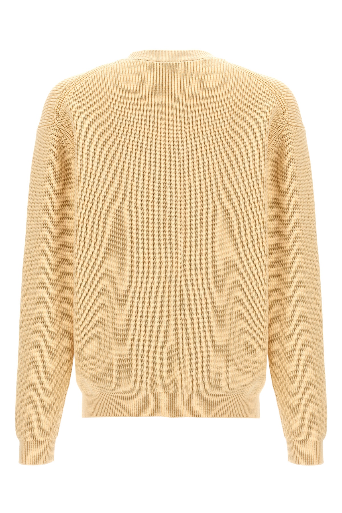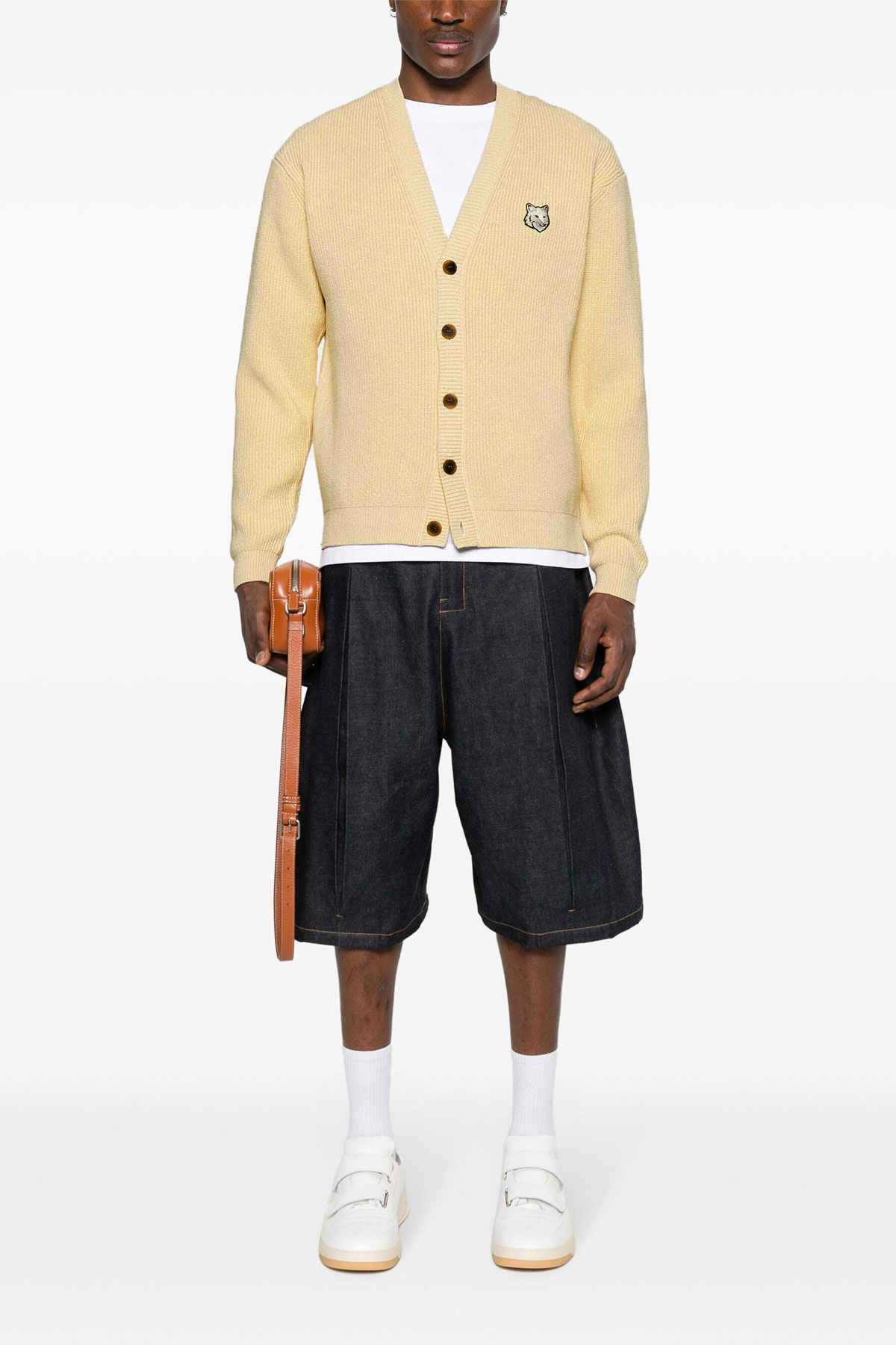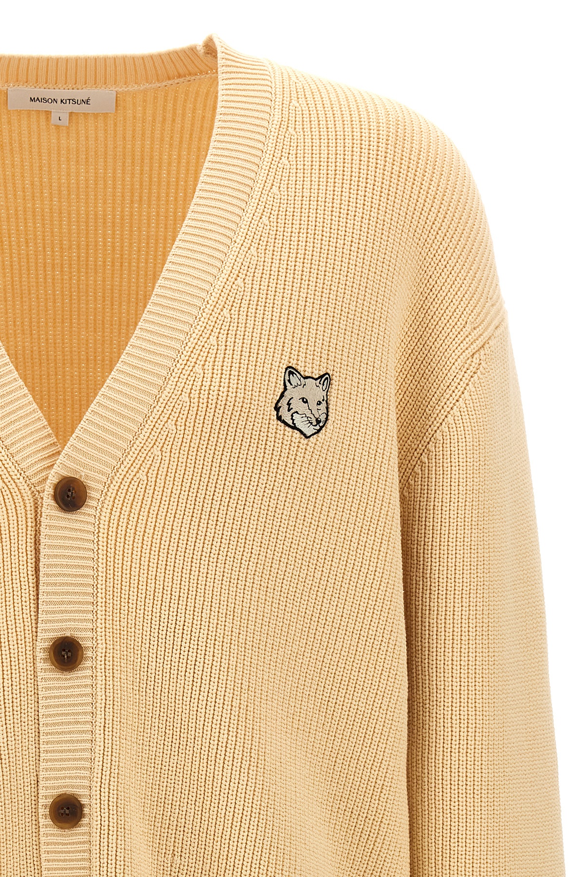 'Bold Fox Head' cotton blend knit cardigan with front patch, button closure, long cuffed sleeves.