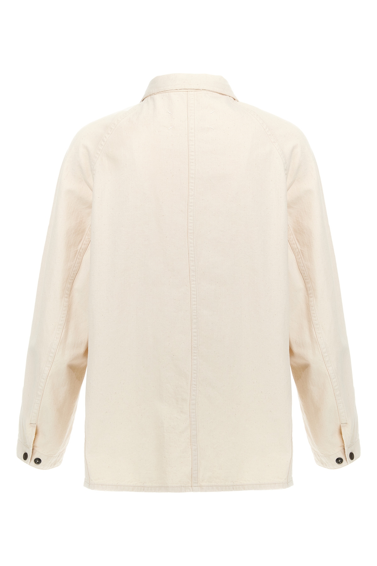 Cotton denim shirt with button closure, pockets, long cuffed sleeves.
