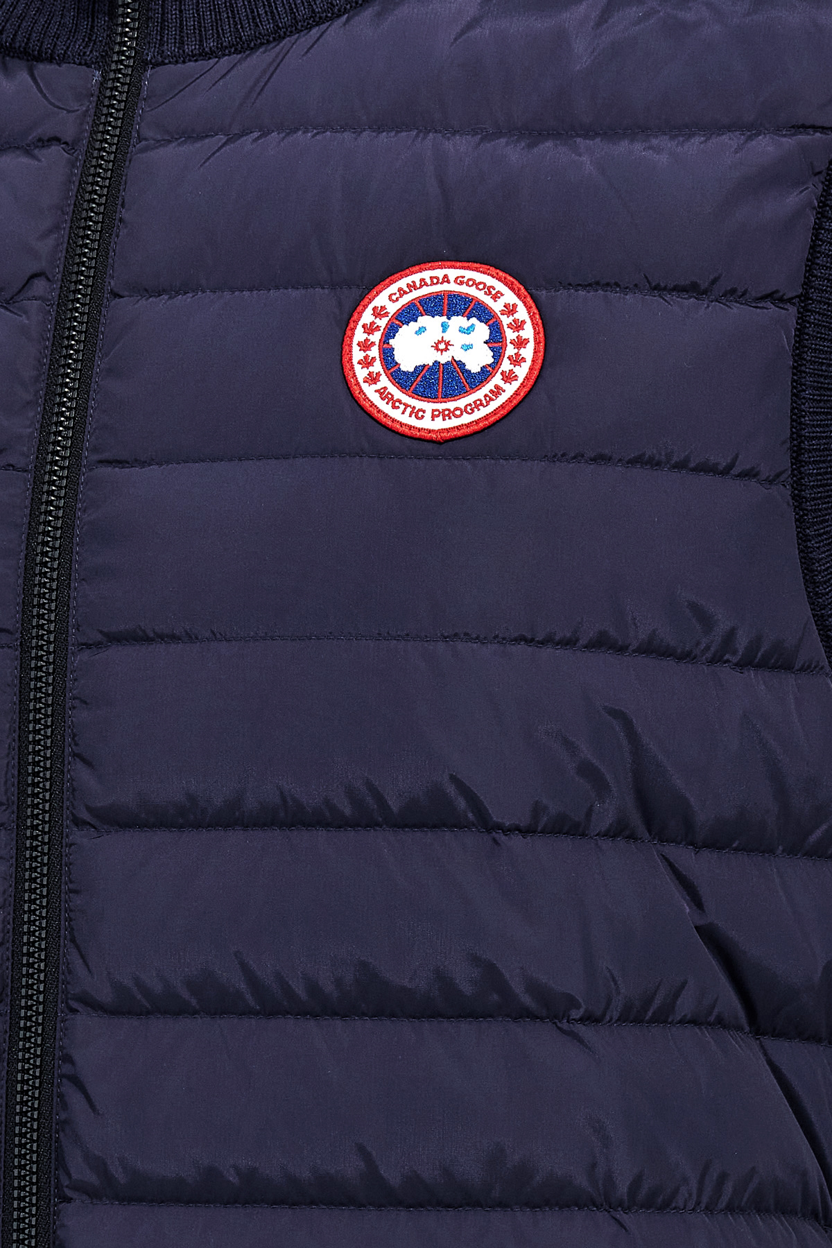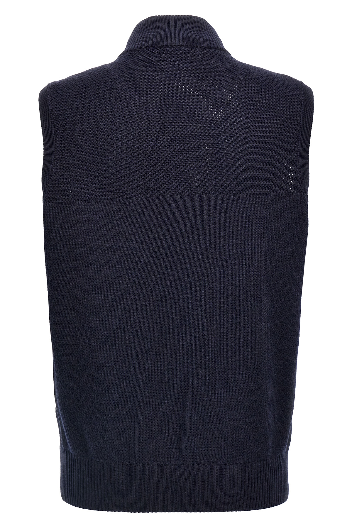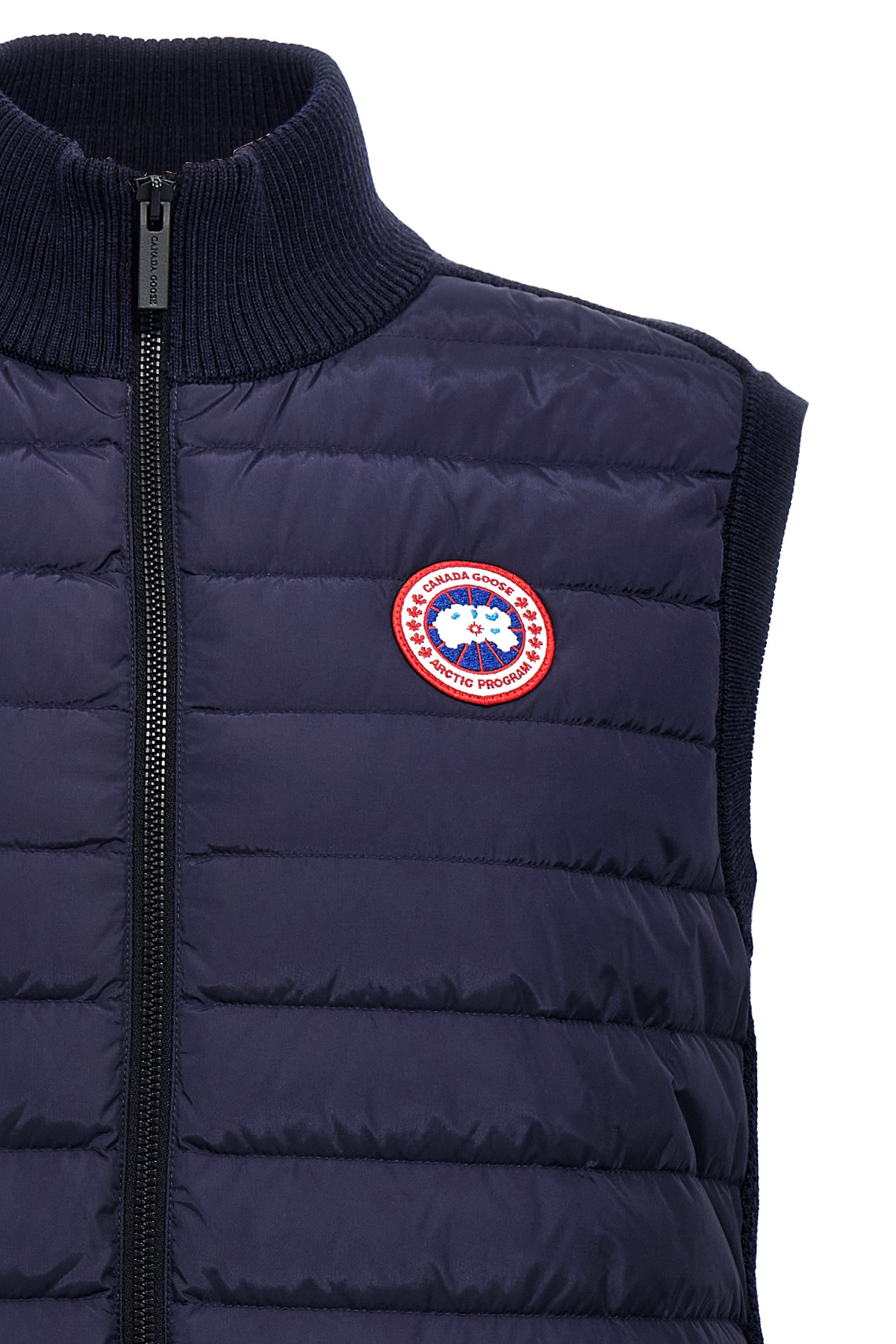'Hybridge' nylon vest with feather padding and wool sweater, zip closure, front logo patch, pockets.