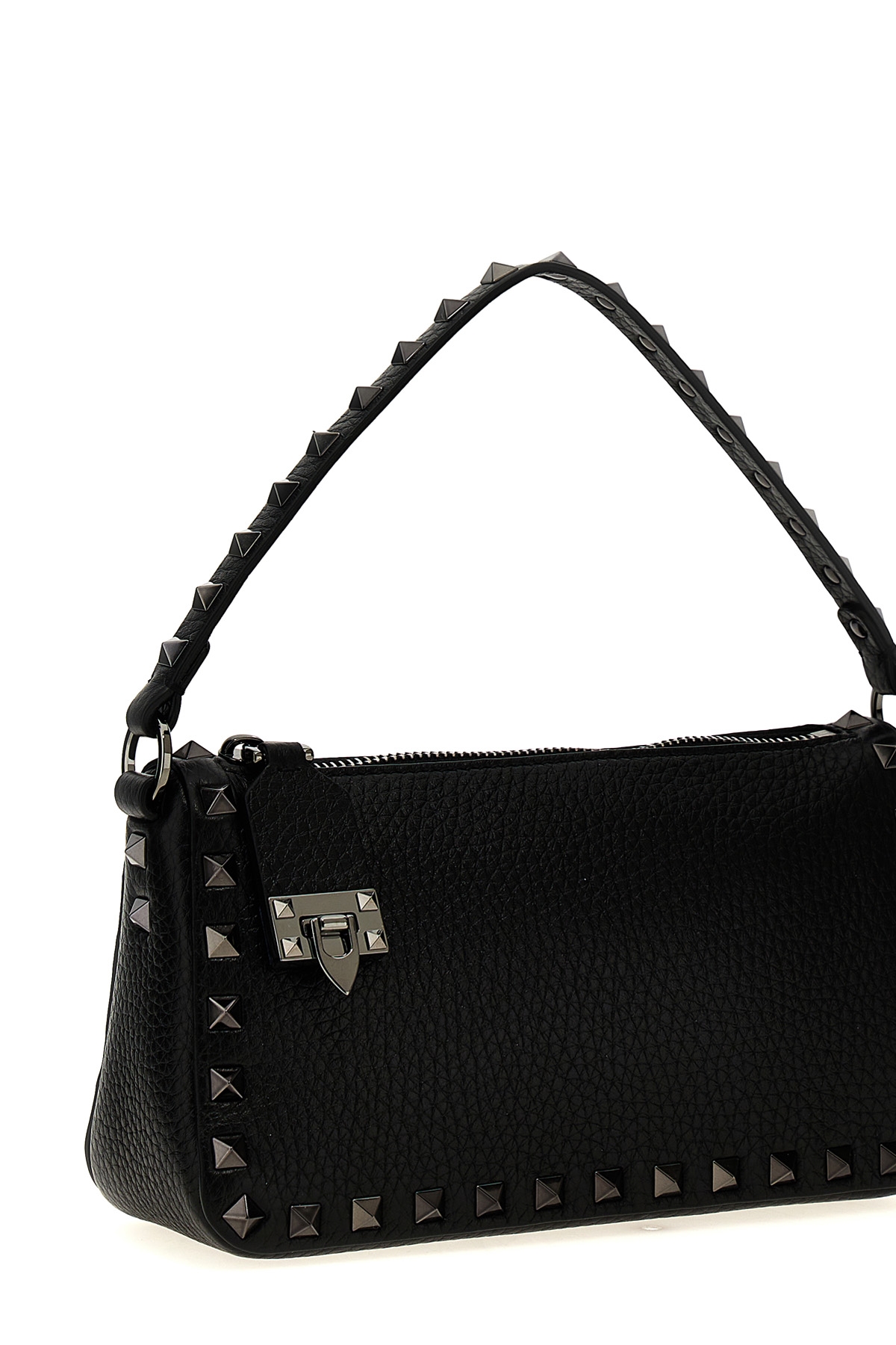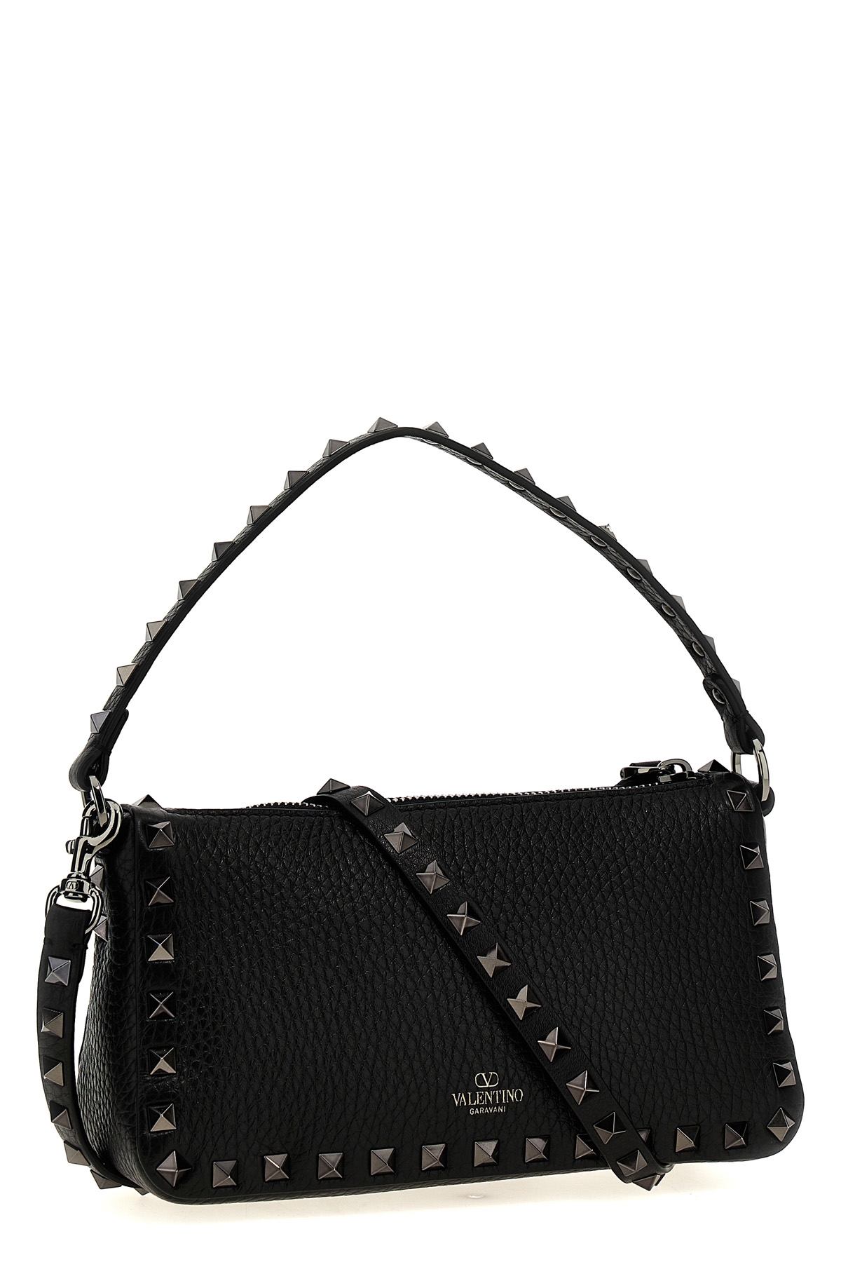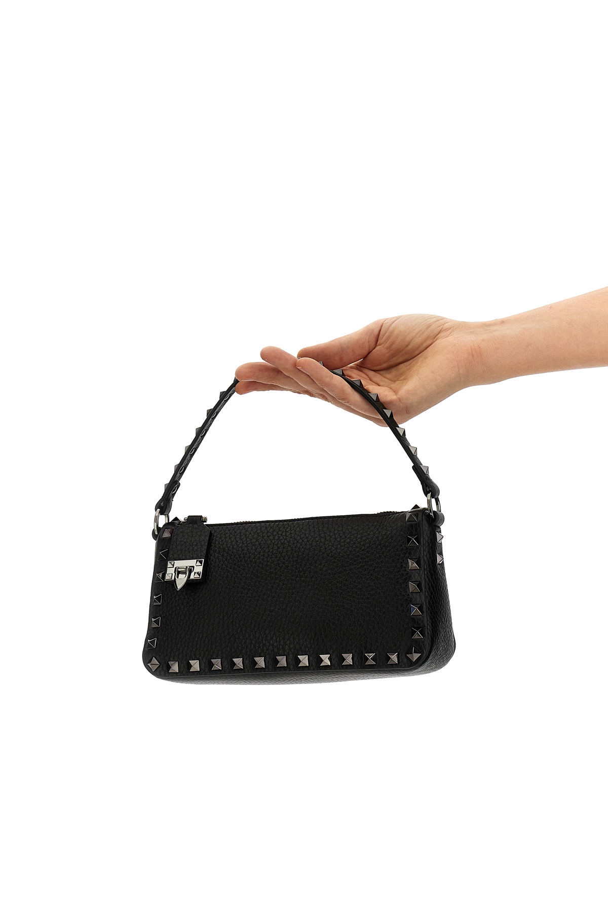 'Rockstud Small' leather shoulder bag with stud applications, zip closure, fixed handle, removable shoulder strap.