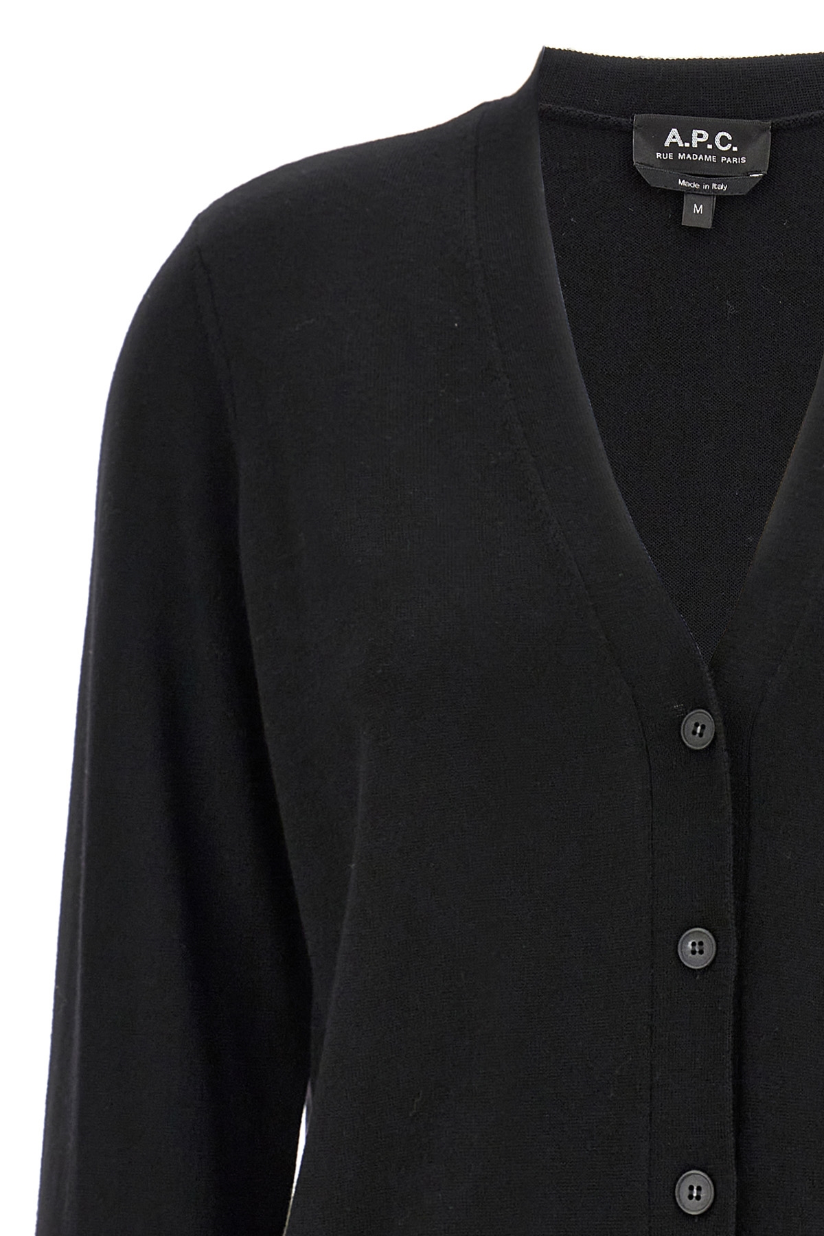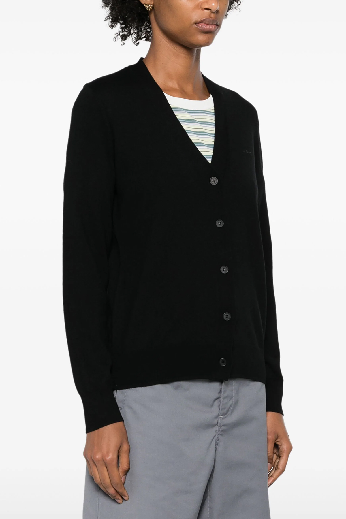 'Salome' wool cardigan with front logo embroidery, button closure, long cuffed sleeves.