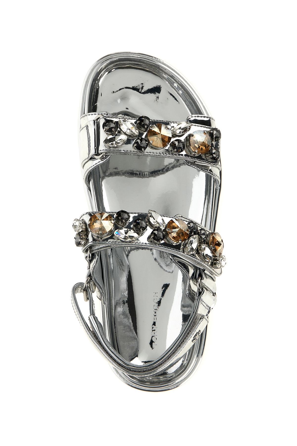 'Kira' leather sandals with jewel applications, adjustable bands with velcro, rubber sole.