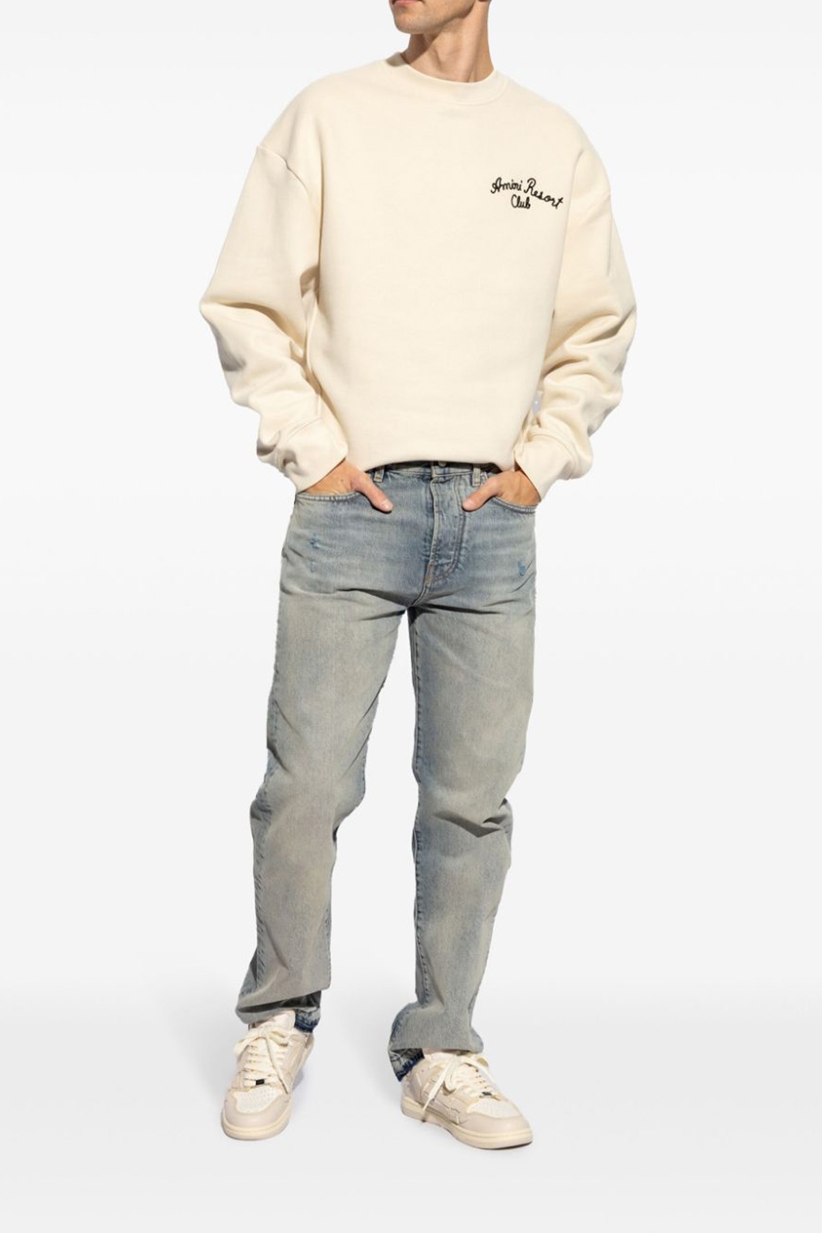 'Released Hem' used-effect cotton denim jeans, five pockets, button closure, straight leg without hem, back logo tag.
