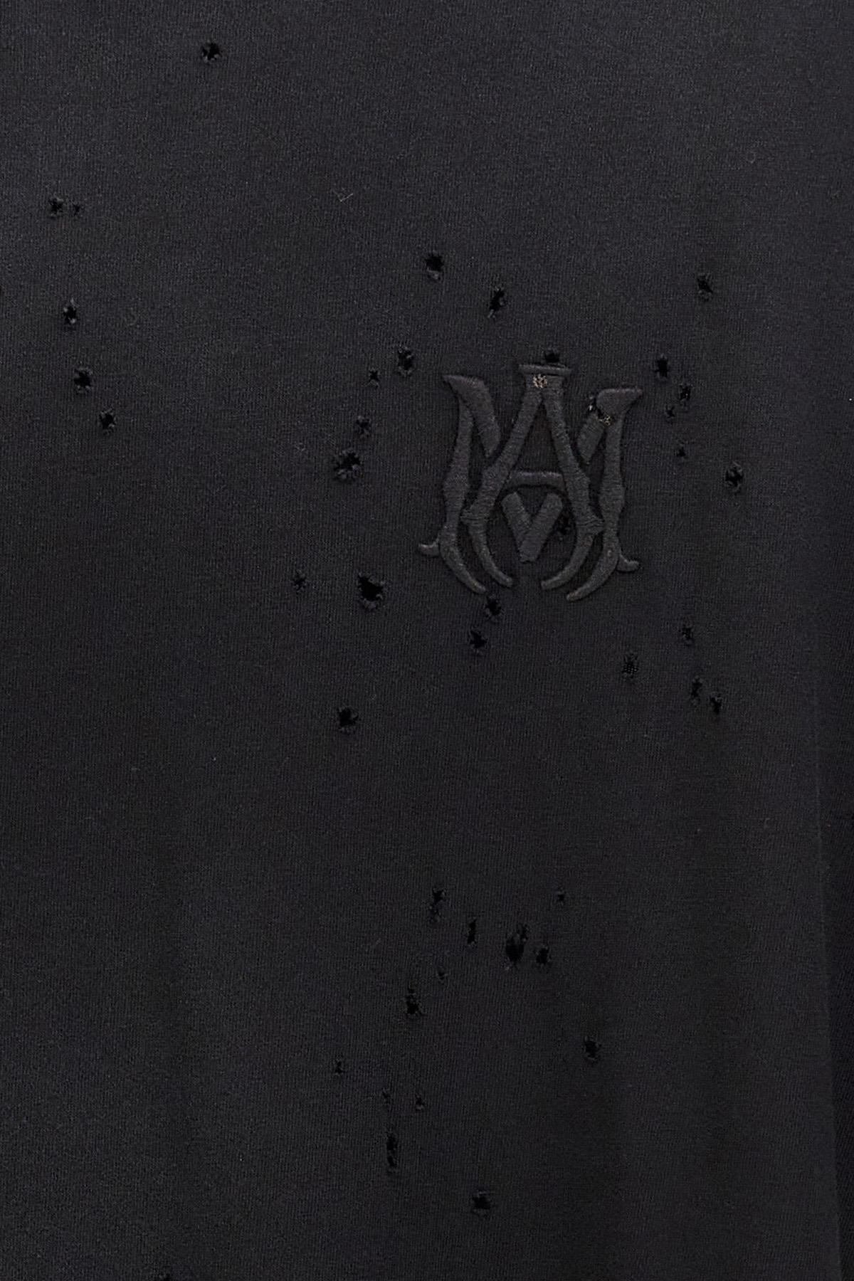 'MA Shotgun' cotton t-shirt with all-over holes, front logo embroidery, crew neck, short sleeves.