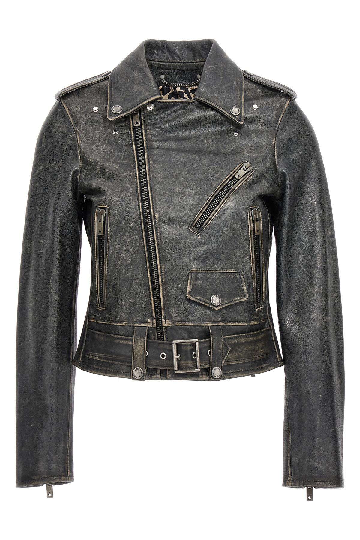 Destiny Slim' vintage-effect leather biker jacket with zip closure, pockets and long sleeves.