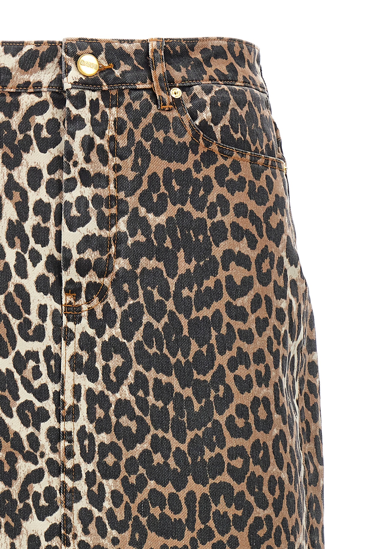 Long skirt in leopard-print cotton denim with zip and button closure, five pockets, back logo patch, front and back split. SUSTAINABLE: This product is made of organic cotton.