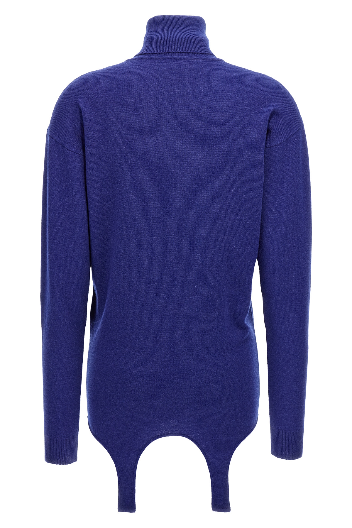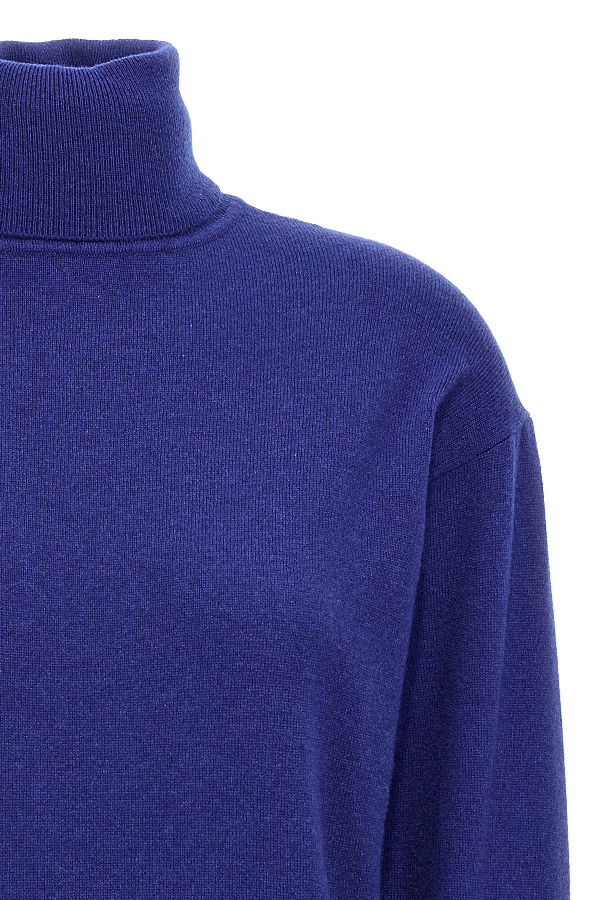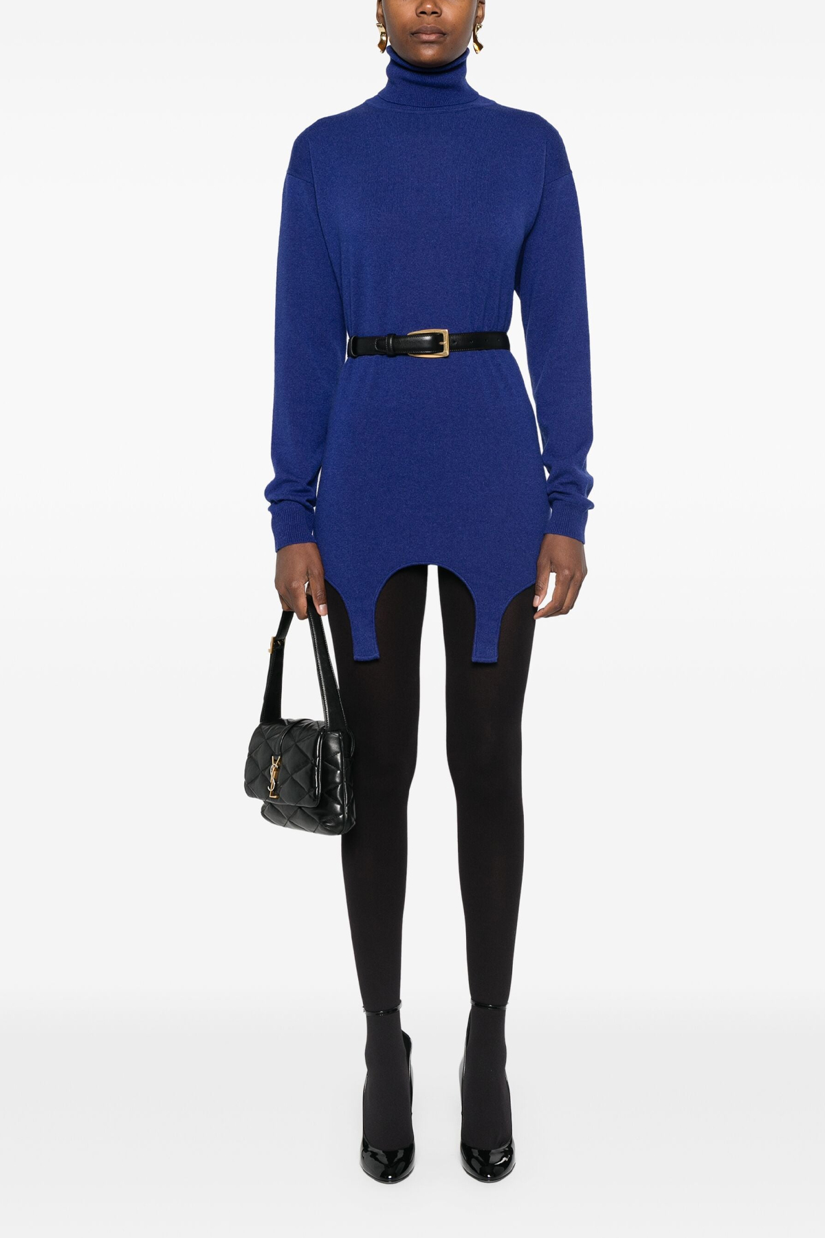 Cashmere sweater with high neck, long cuffed sleeves, garter on the hem.