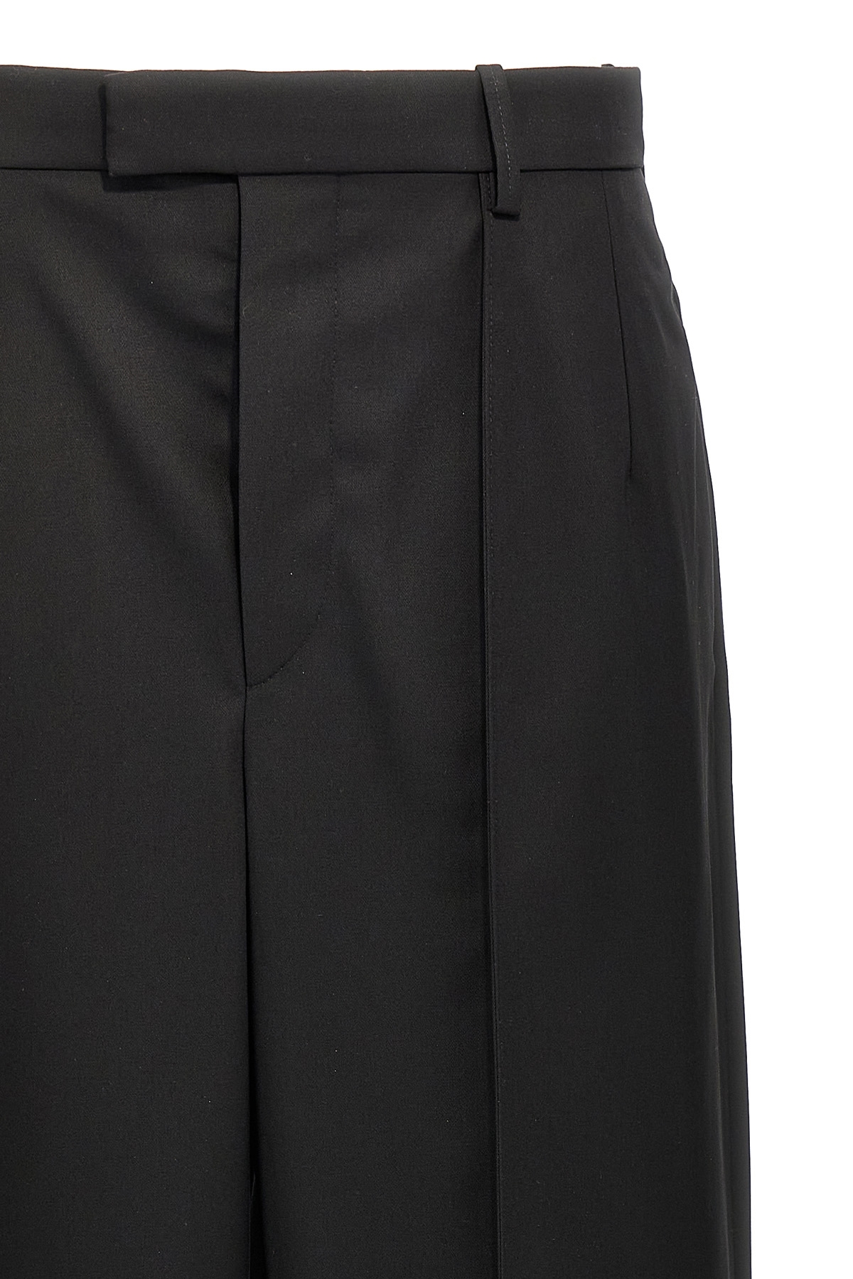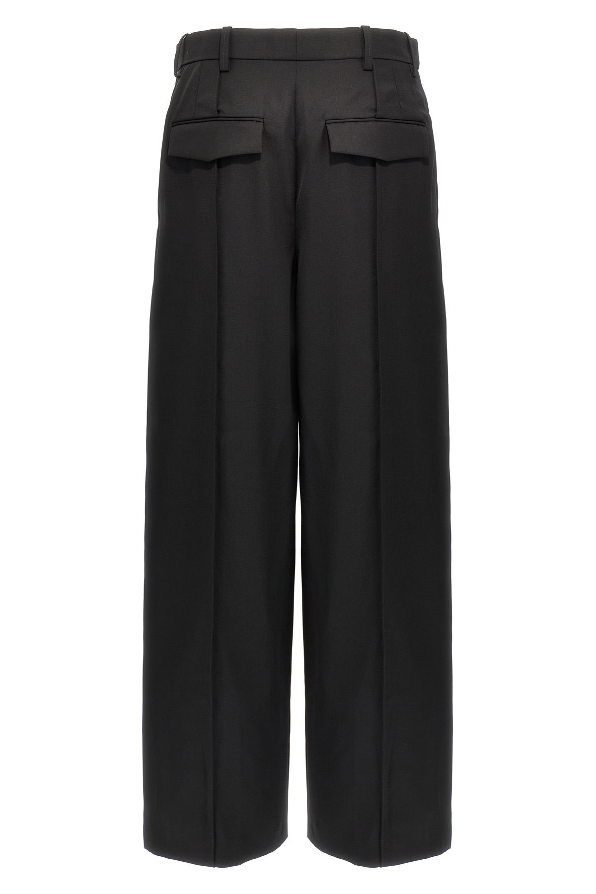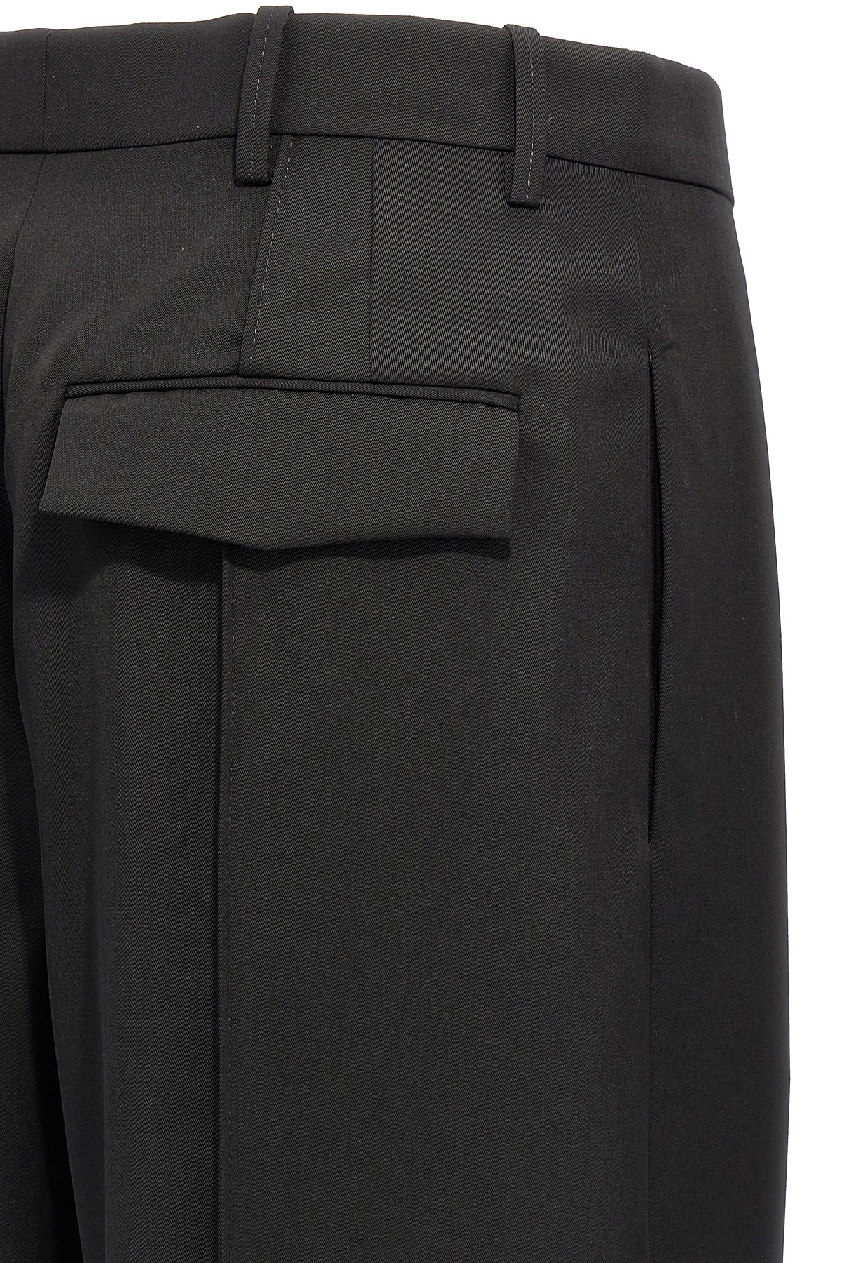 High-waisted 'RHW' wool pants with straight pincer leg and stretched pleat, zipper, hook and button closure, pockets.