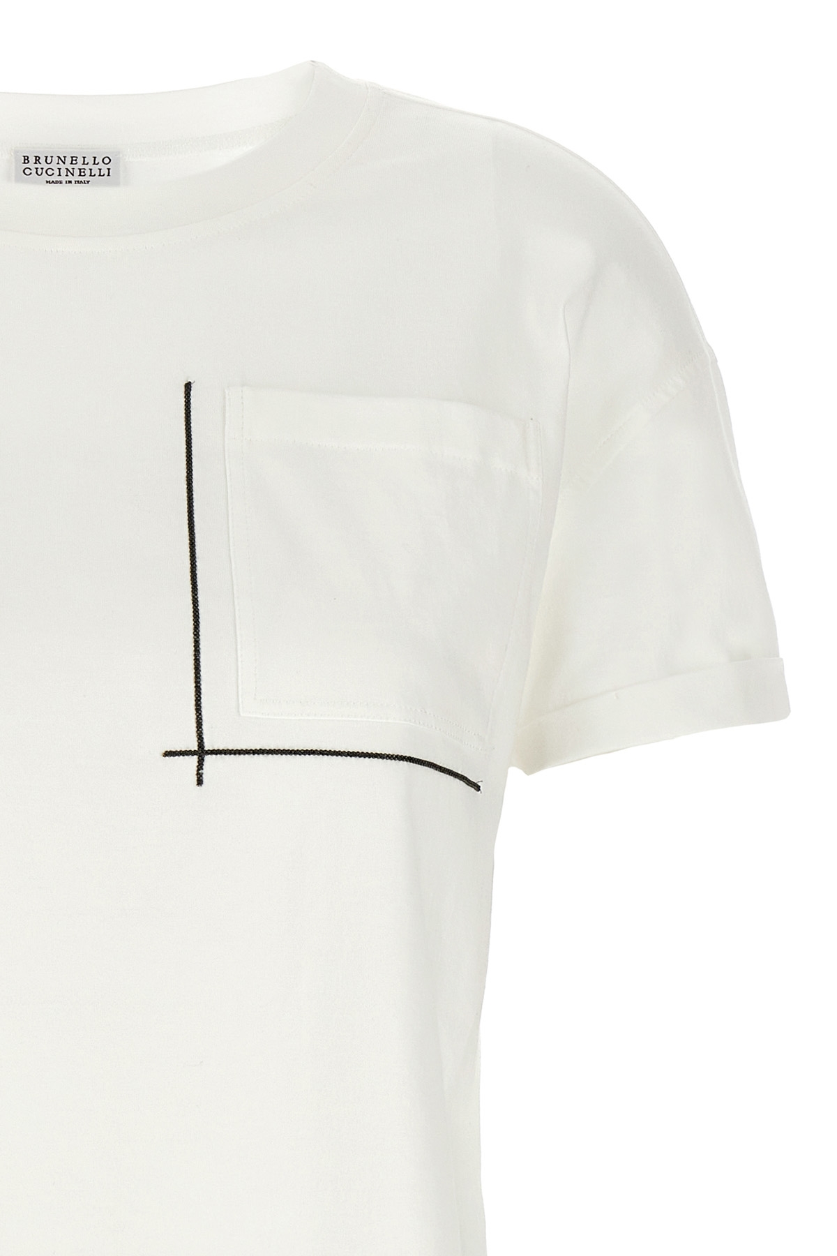 Cotton T-shirt, pocket with Monile detail, crewneck, and short turned-up sleeves.