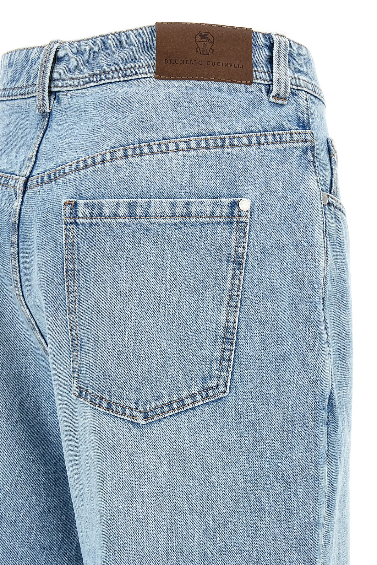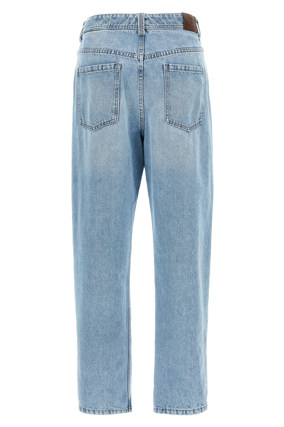 High-waisted cotton denim jeans with five-pocket Monile detail, zip and button closure, and leather logo label on the back.