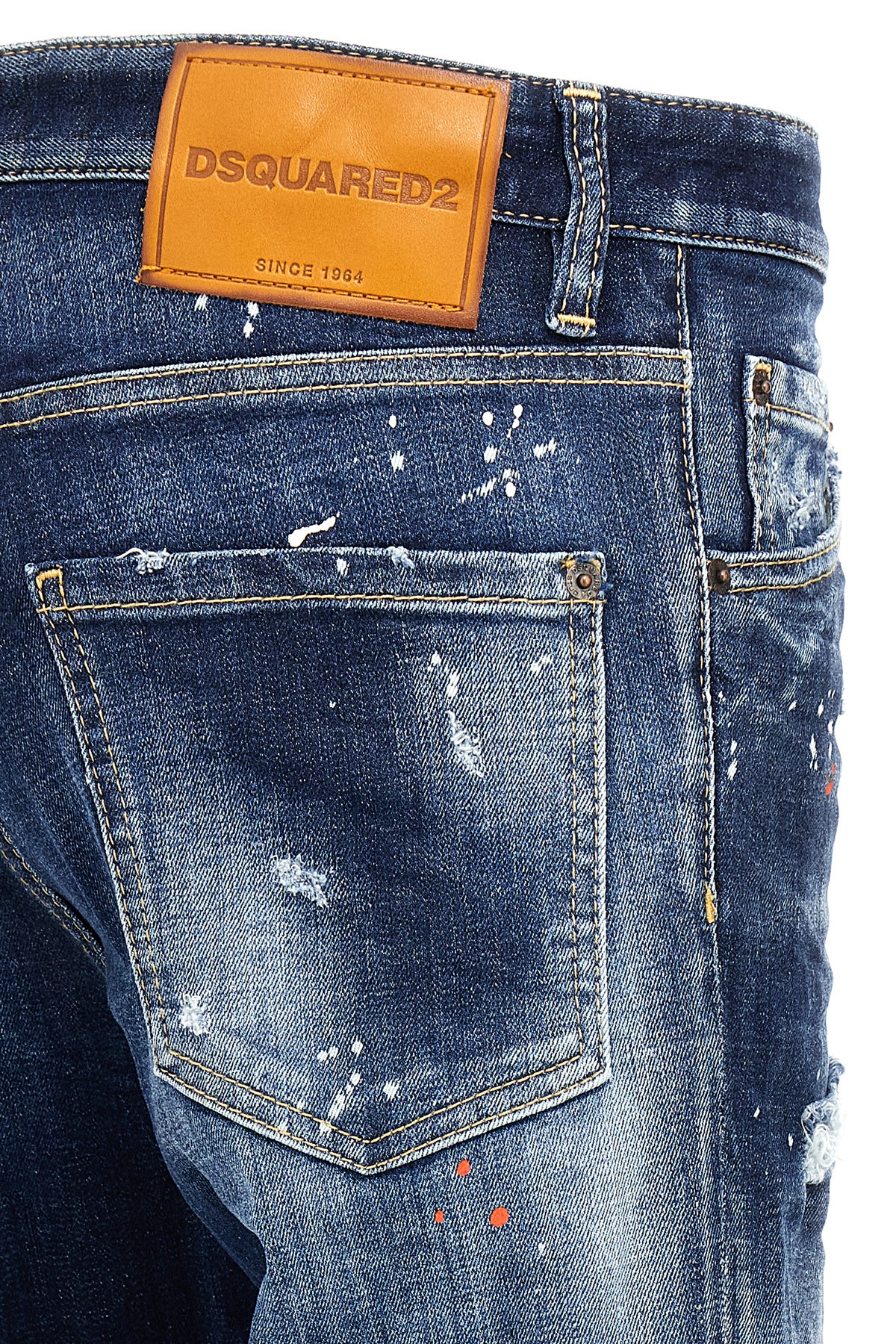 'Cool Guy' stretch cotton denim jeans with used-effect details and patent leather stains, button closure, five pockets, leather logo label at the back.