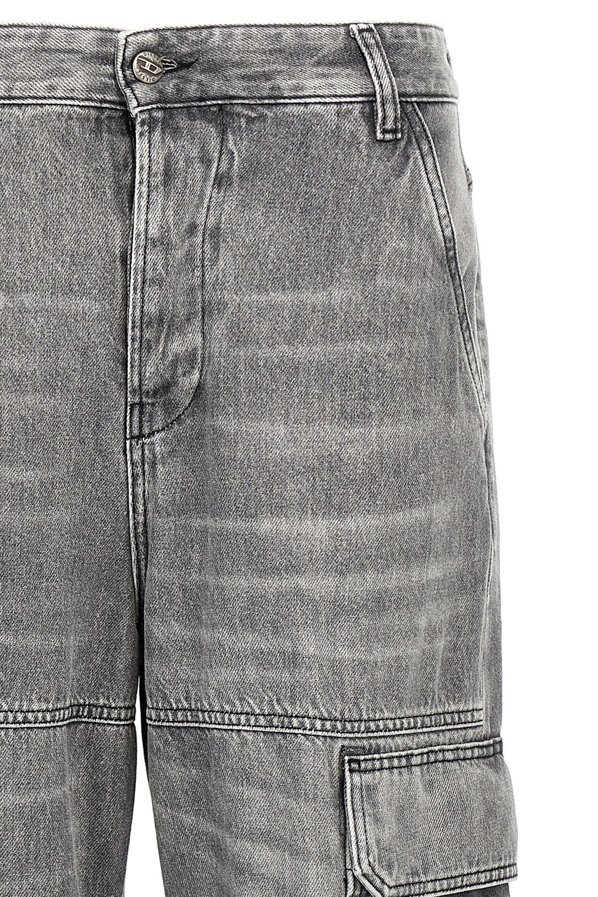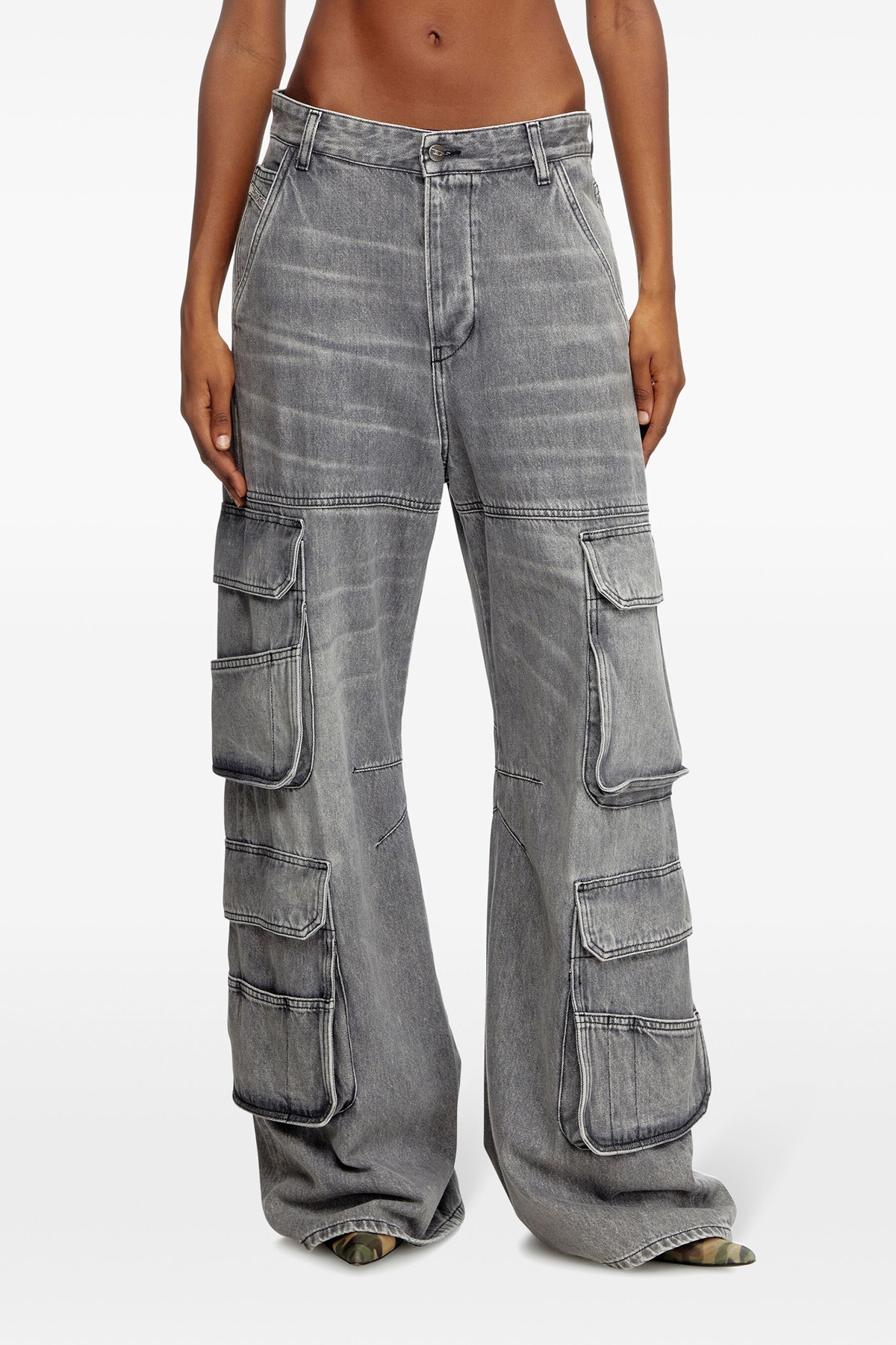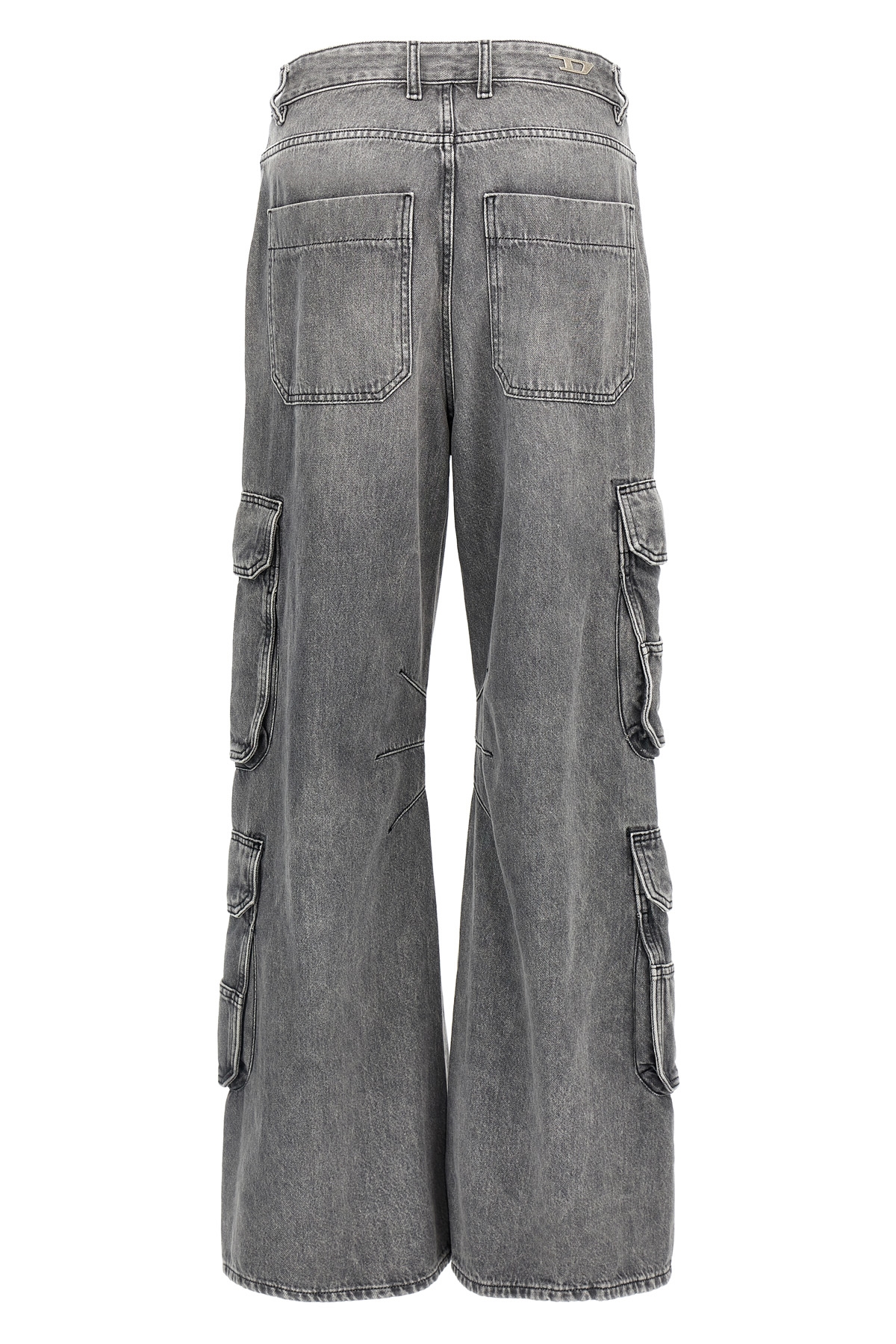 'D-Sire 0dcbe' cotton denim jeans, back metal logo, low-waisted model with low crotch and extra-long wide leg, oversized cargo pockets, button closure, five pockets.