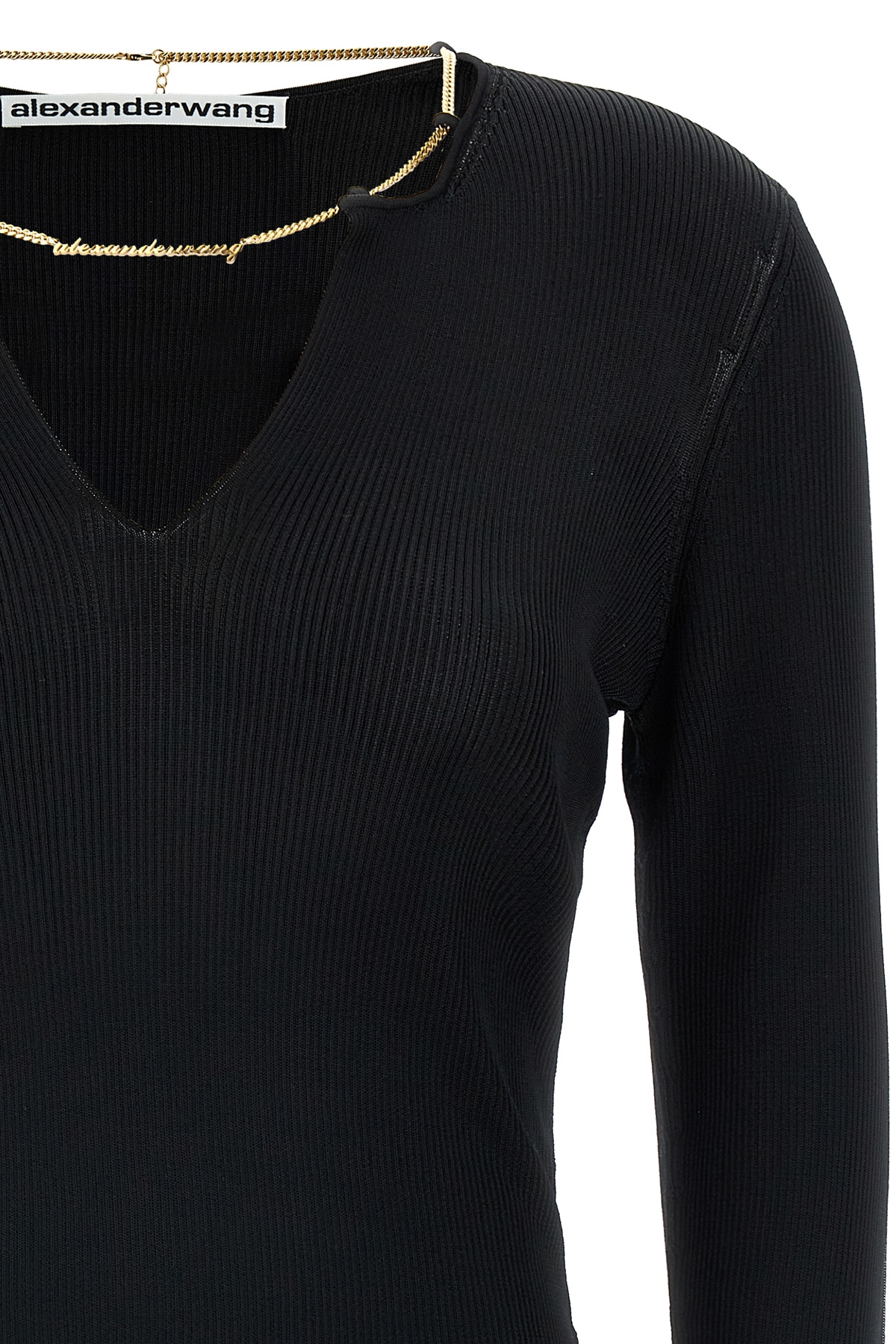 'Gold Nameplate Chain' viscose sweater with chain detail with removable logo at the neck, V-neck, long sleeves.