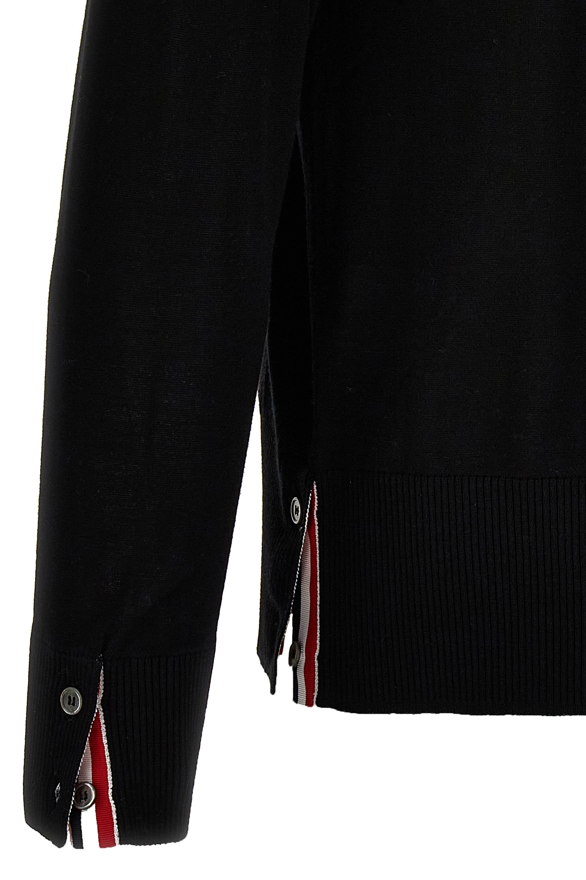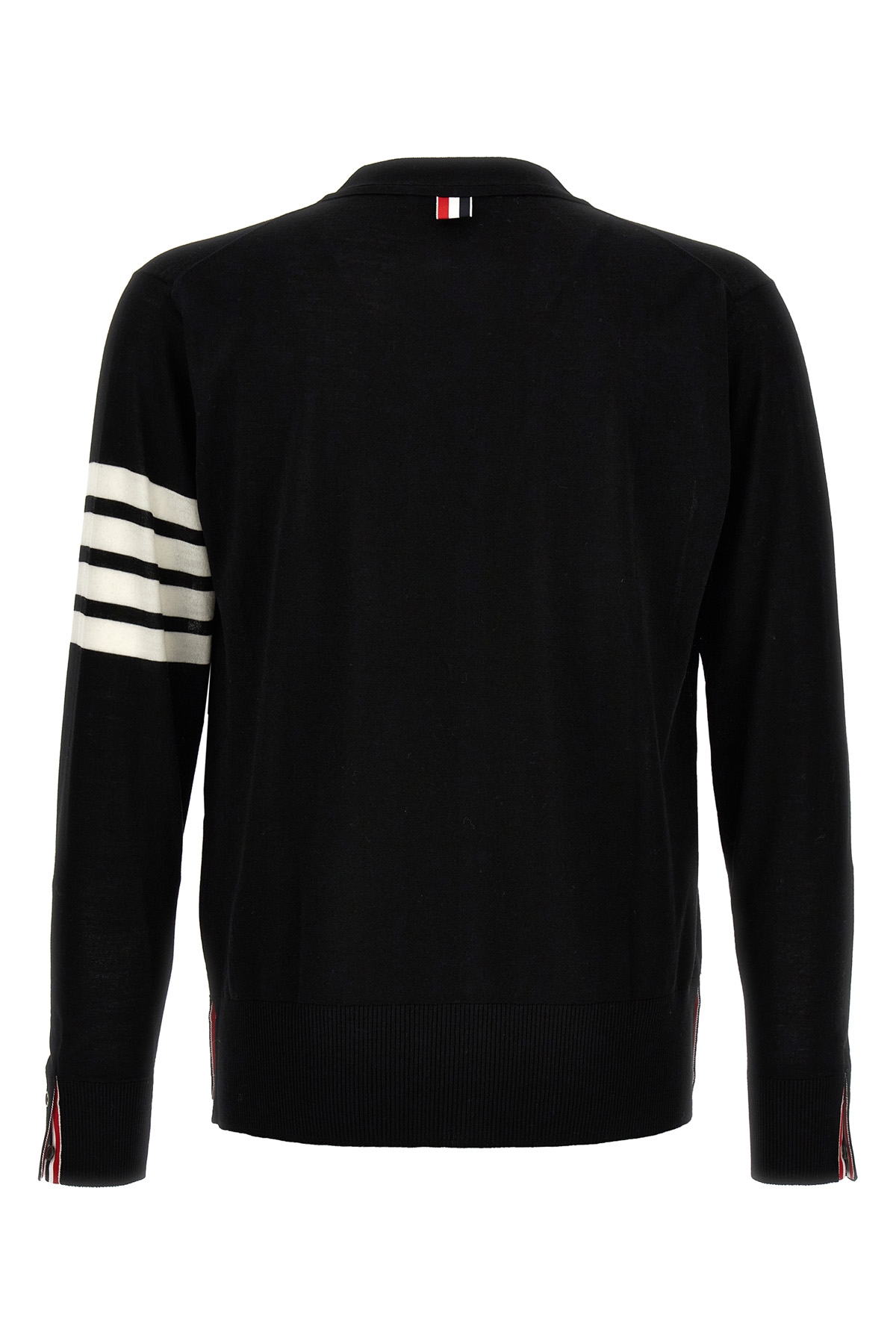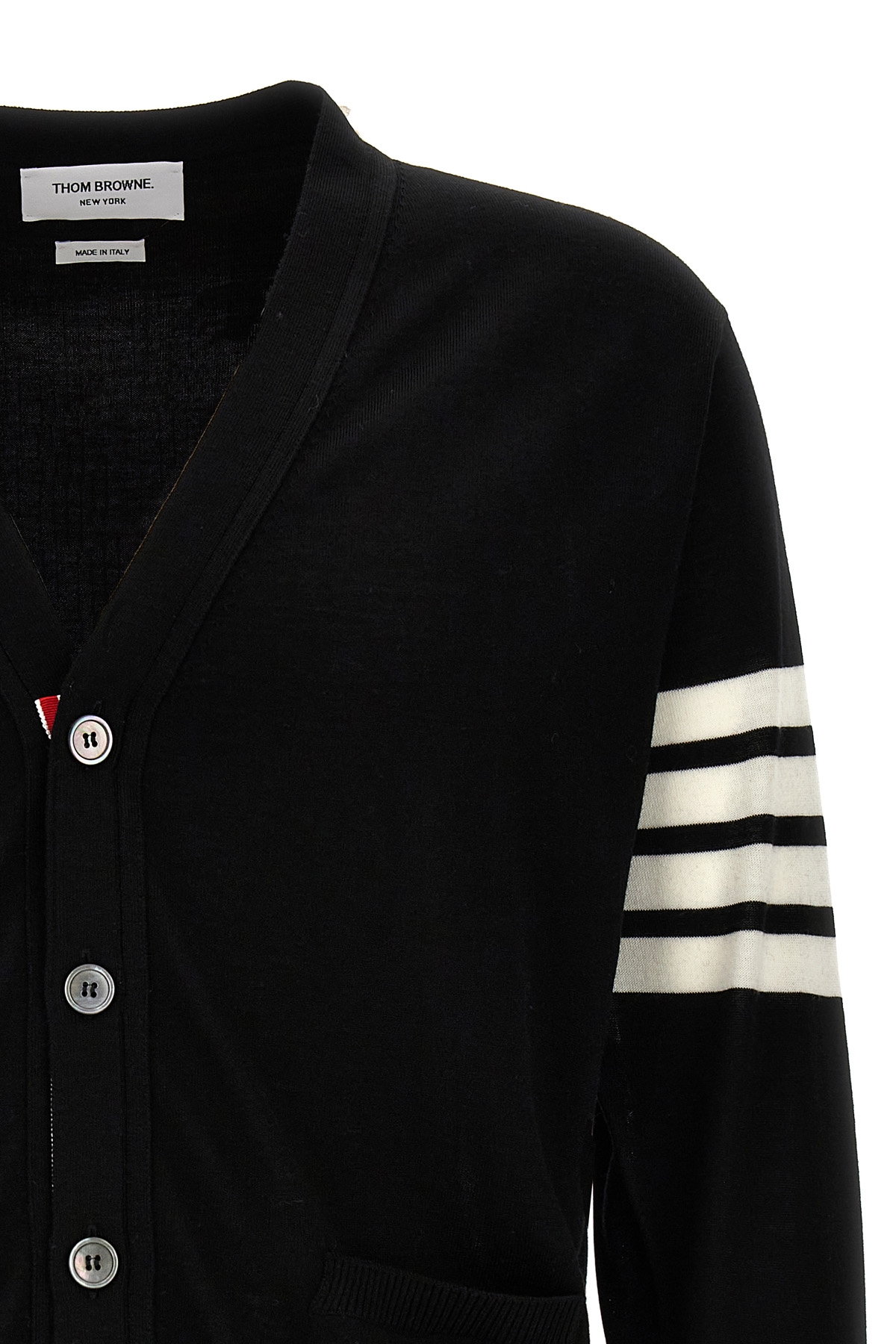 Merino wool cardigan with buttons, V-neck, long sleeves, '4 bar' detail.