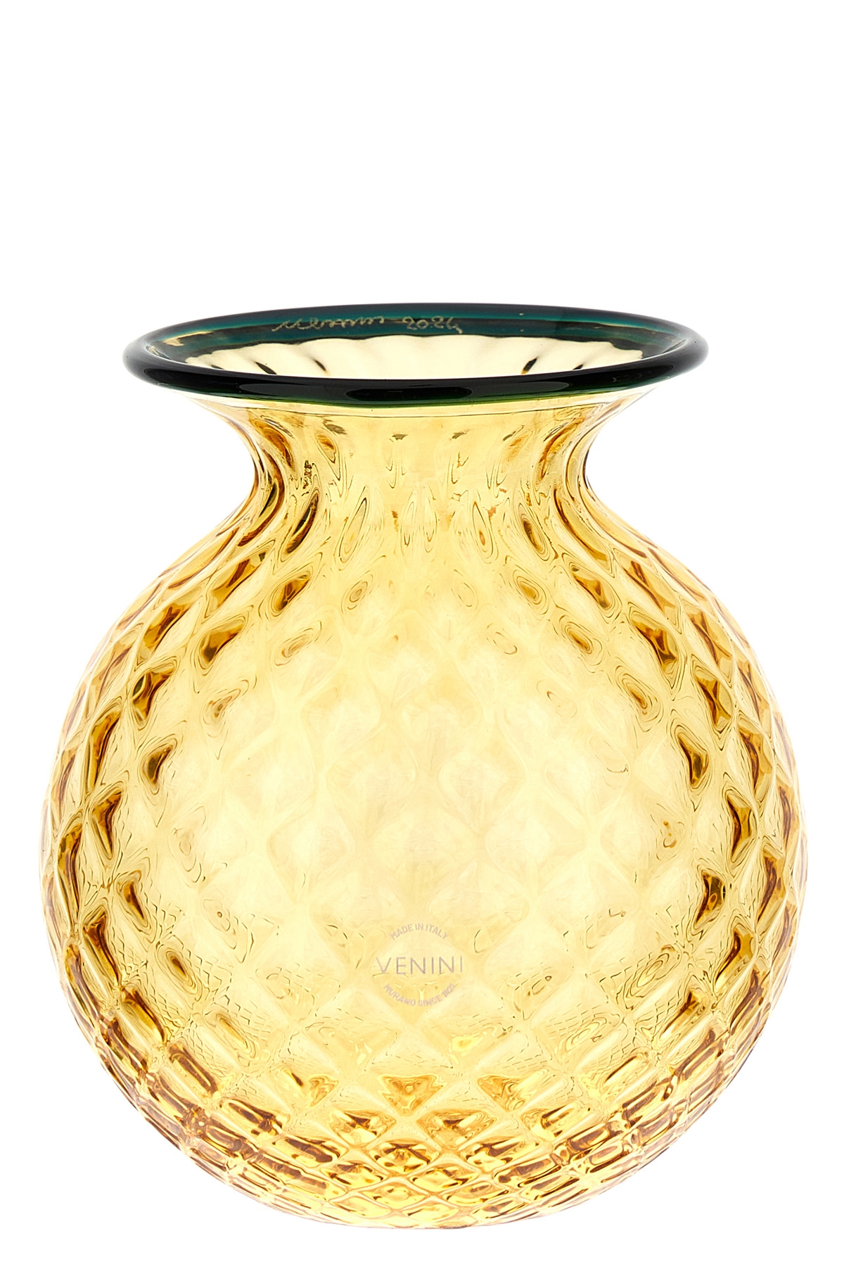 The Balloton collection is expanded and enriched with a version able to accommodate larger floral compositions. The Balloton Fiori are made through a unique artisanal process that recreates the matelasse effect using glass. These vases are handmade, blown and finished with skill, while a colored thread is applied hot, embracing the decorative motif and leaving room for wonder.