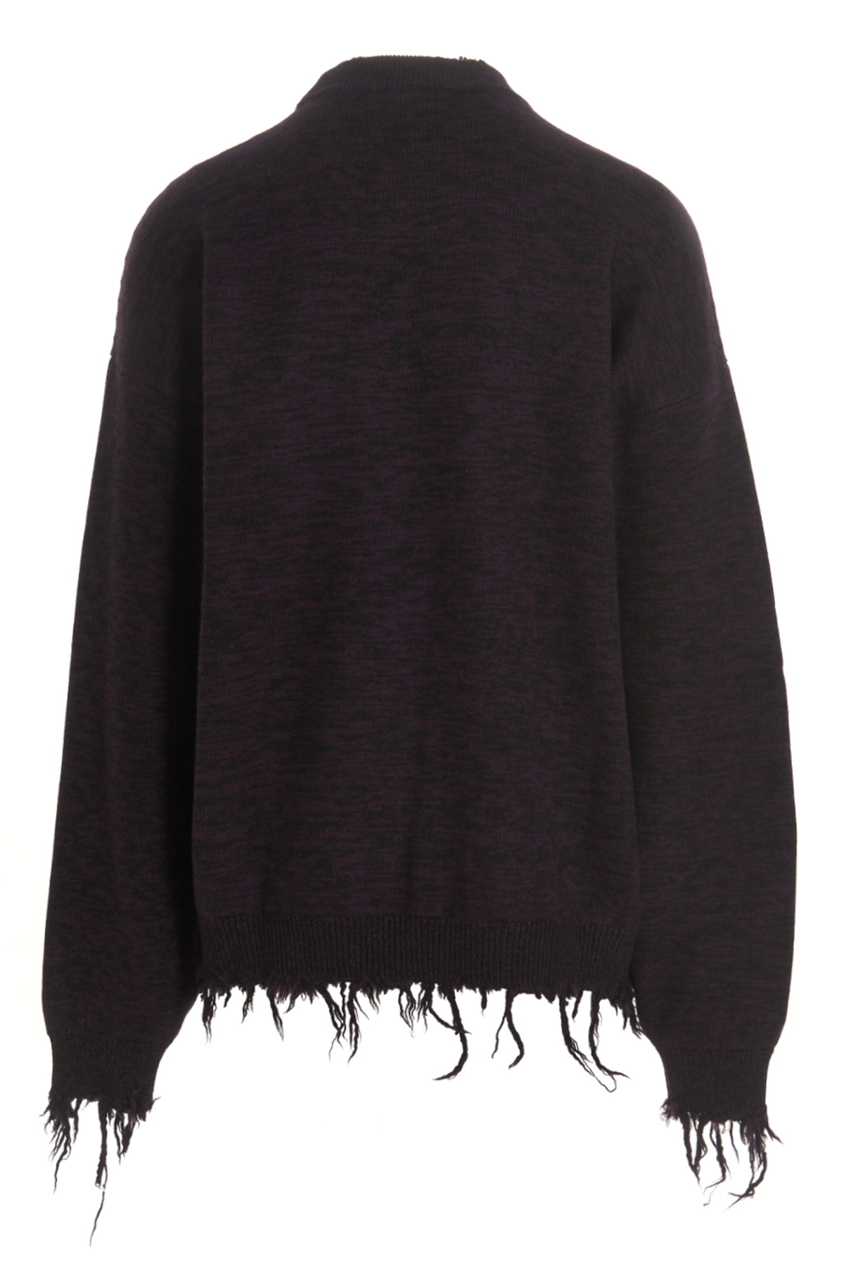 'Afterlife' merino wool sweater with front embroidery, crew neck, long cuffed sleeves, frayed trims.g.
