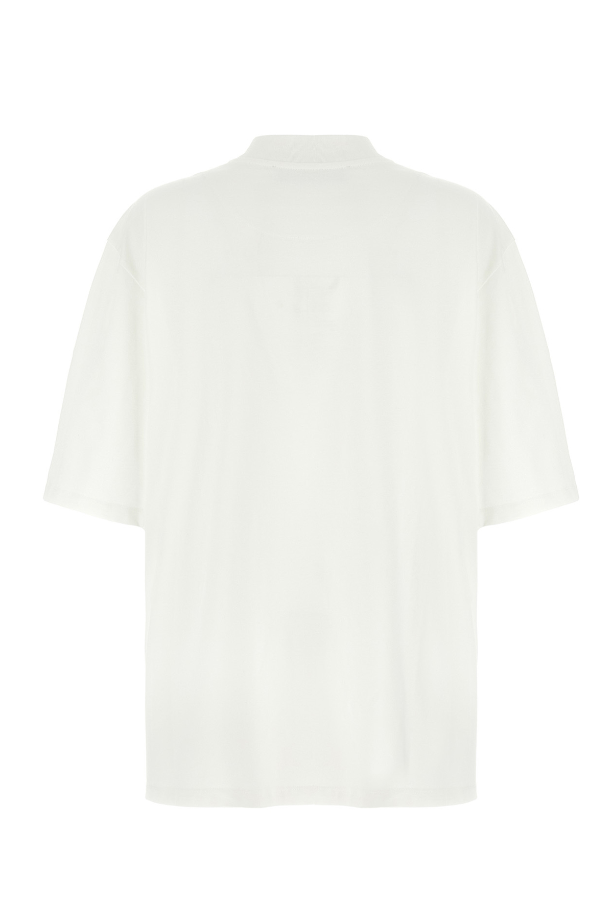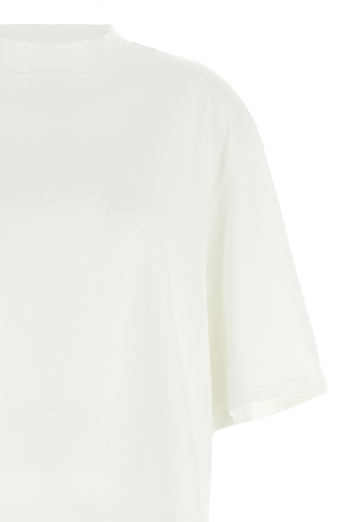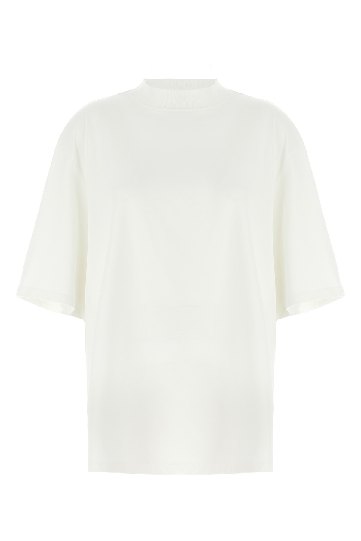 'Kilie' cotton T-shirt with front logo embroidery, high neck, short sleeves, removable padded shoulders.
