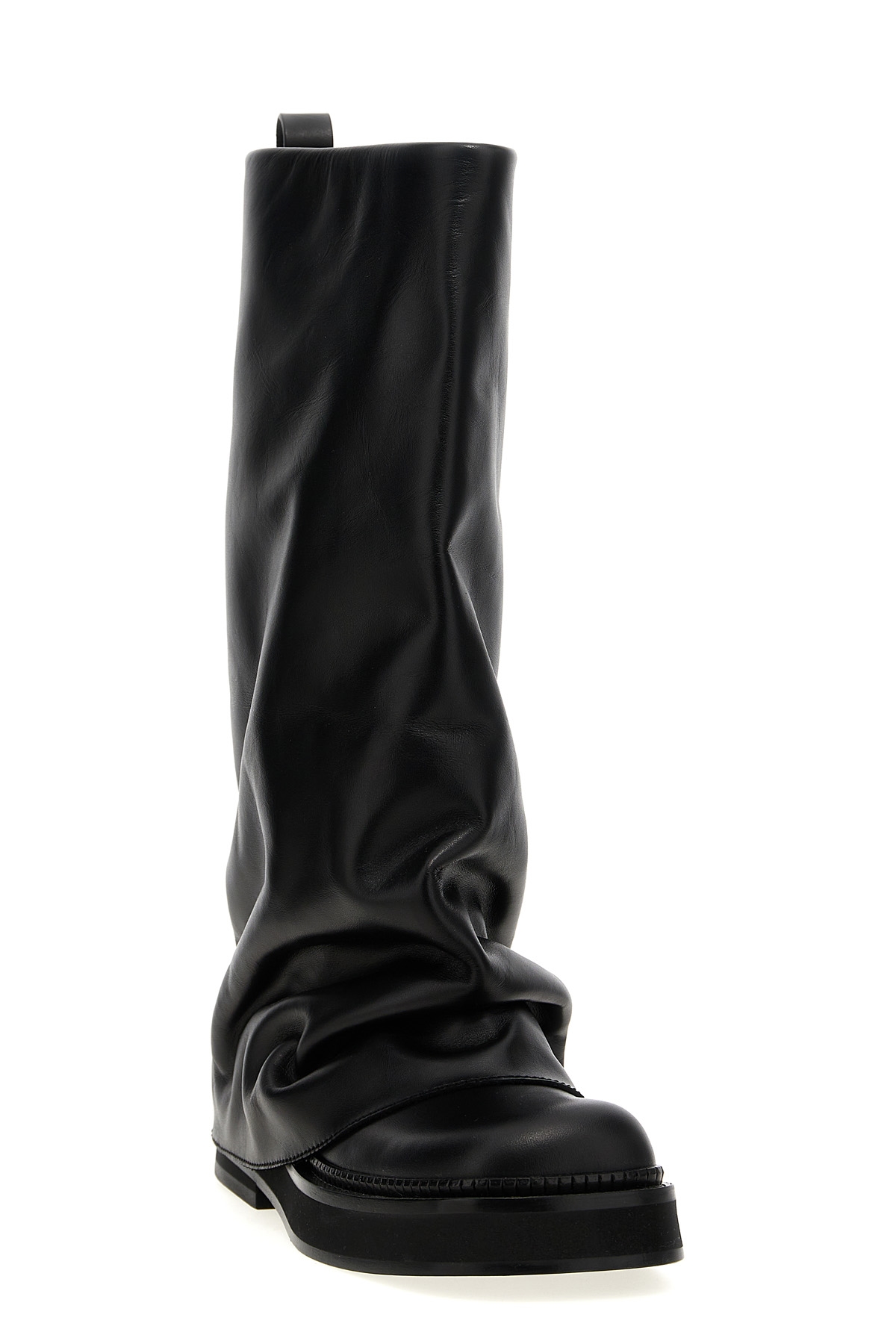 'Robin Combat' leather boots, rubber sole.