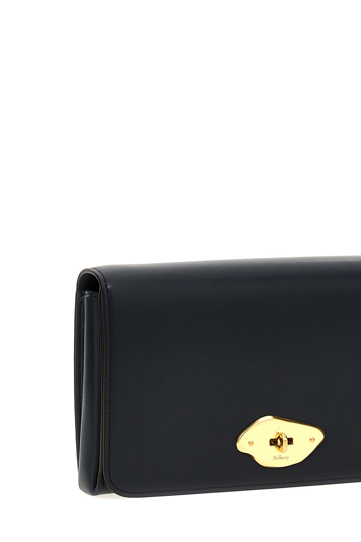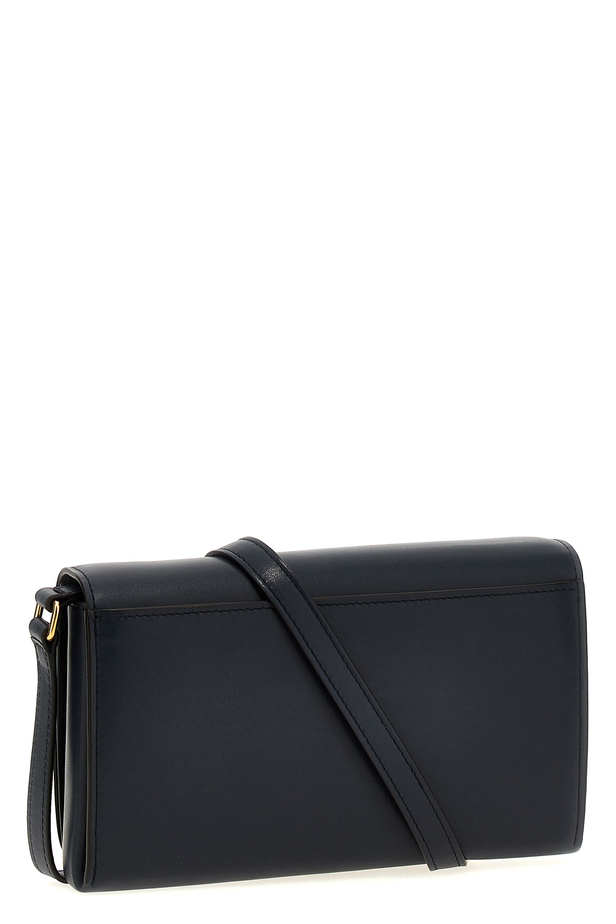 'Lana' smooth leather wallet on chain, flap closure with metal Foundry Lock, adjustable and removable shoulder strap, pocket.