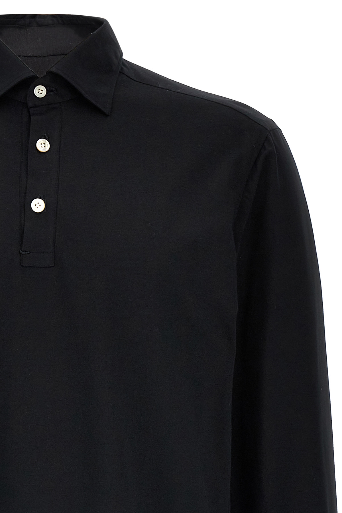 'Positano' cotton knit polo shirt with collar and buttons, long cuffed sleeves.