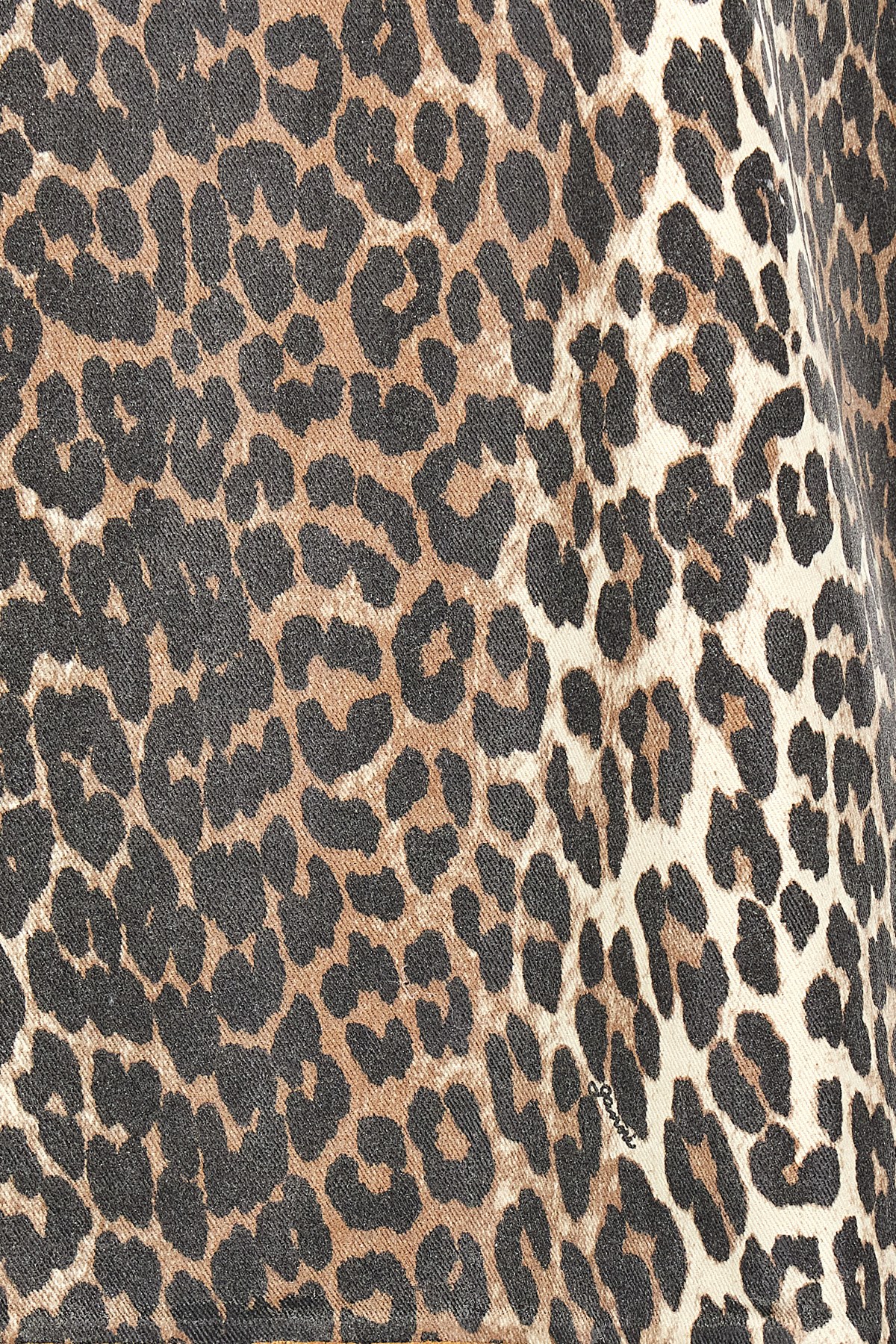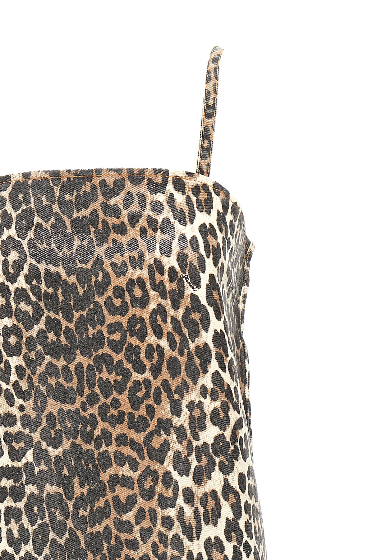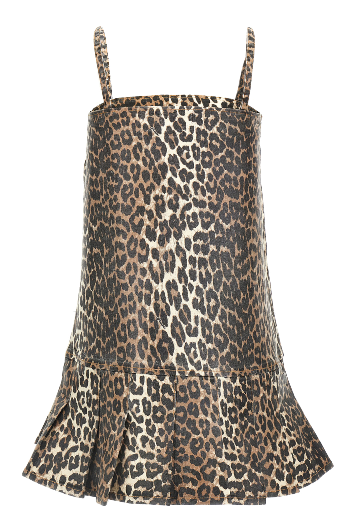 Denim mini dress with leopard print, square neckline, flounced skirt, thin straps. SUSTAINABLE: This product is made of organic cotton.