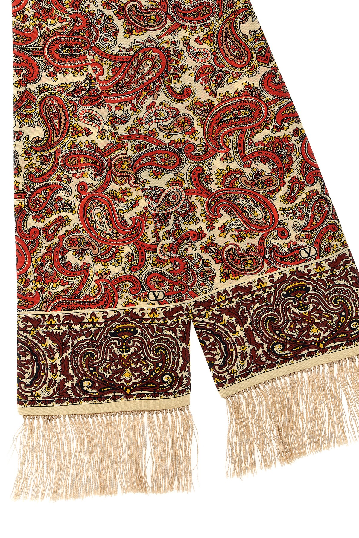 Silk scarf with fringes and all-over 'Voyage Imaginaire' print.
