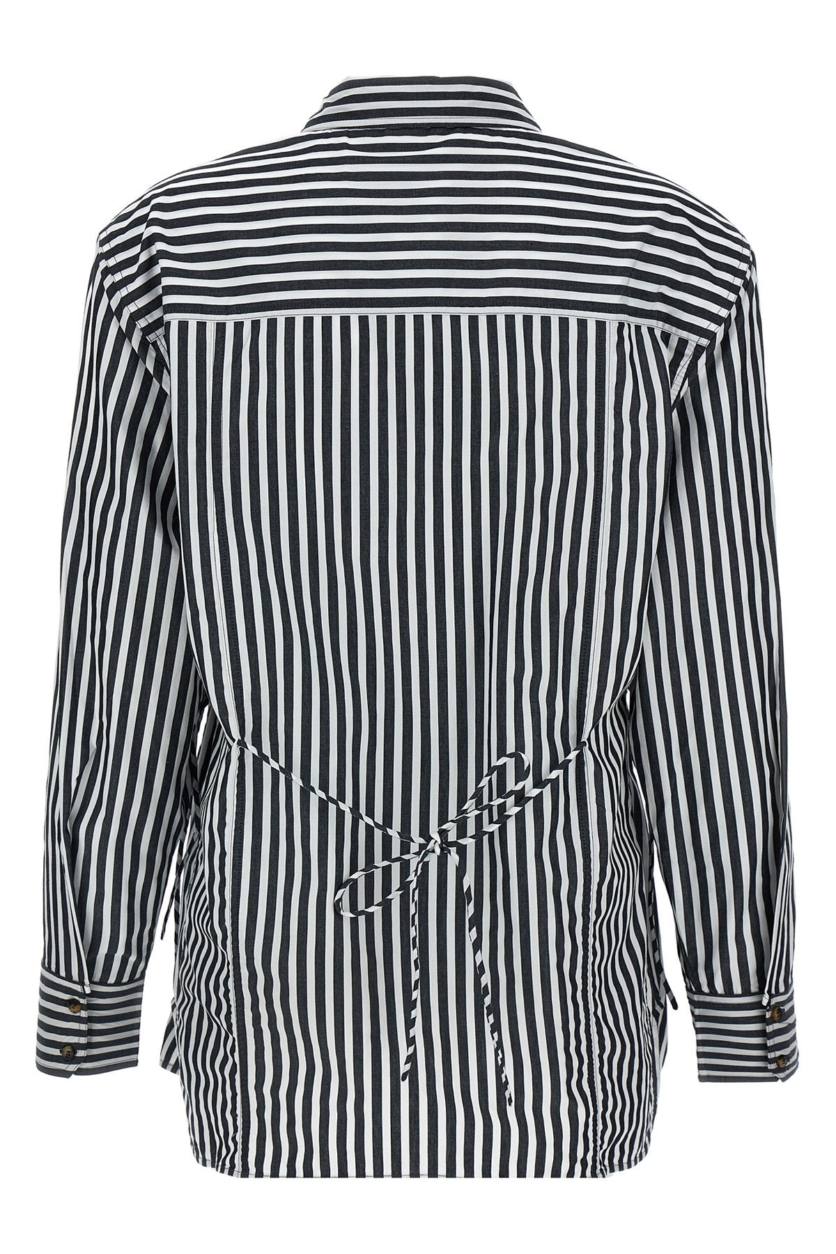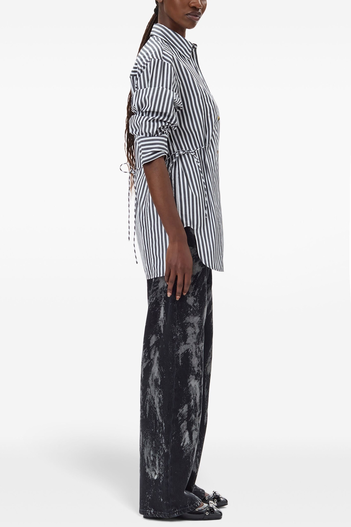 Striped cotton poplin shirt with laces at the waist and back, button closure, long cuffed sleeves. SUSTAINABLE: This product is made of organic cotton.