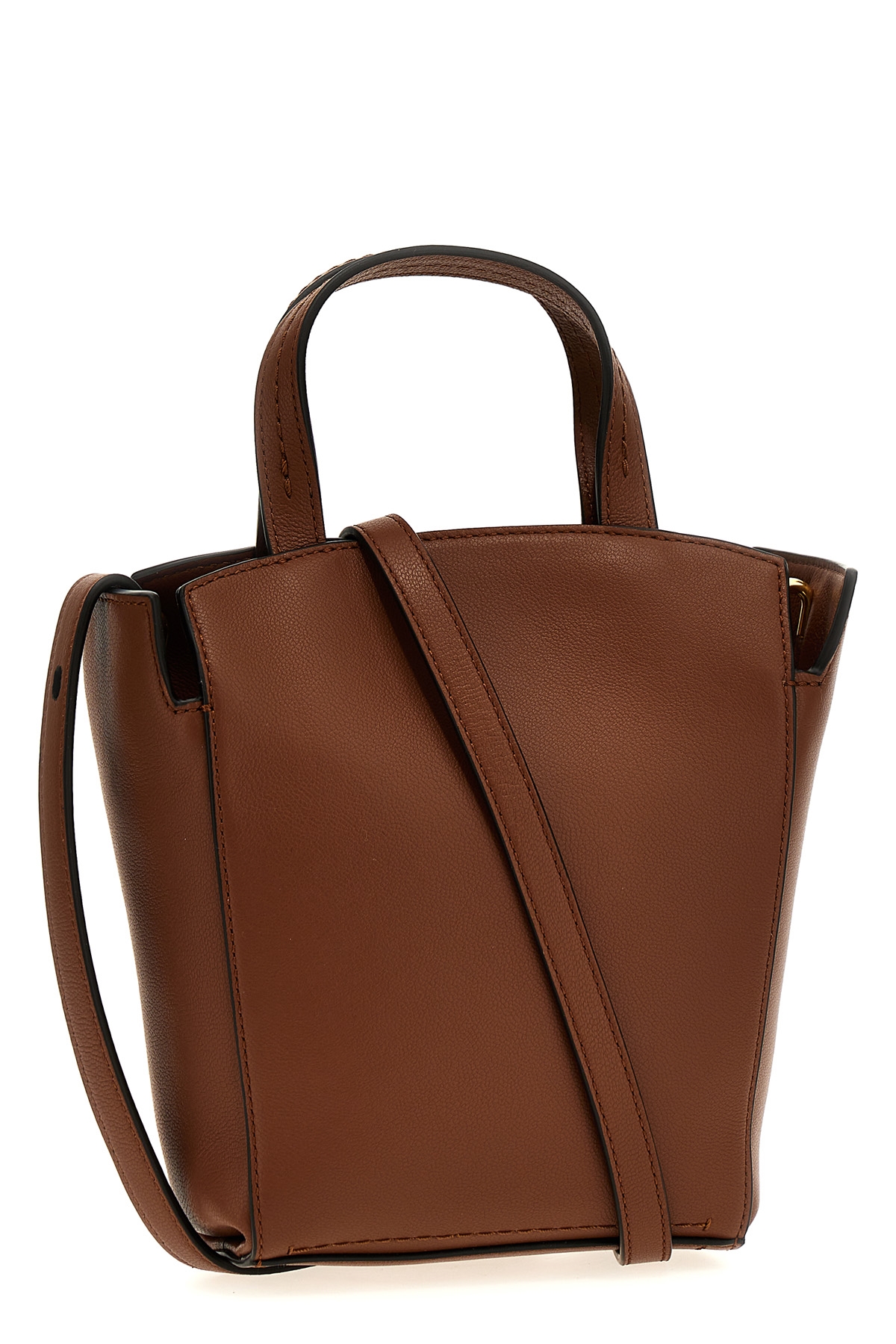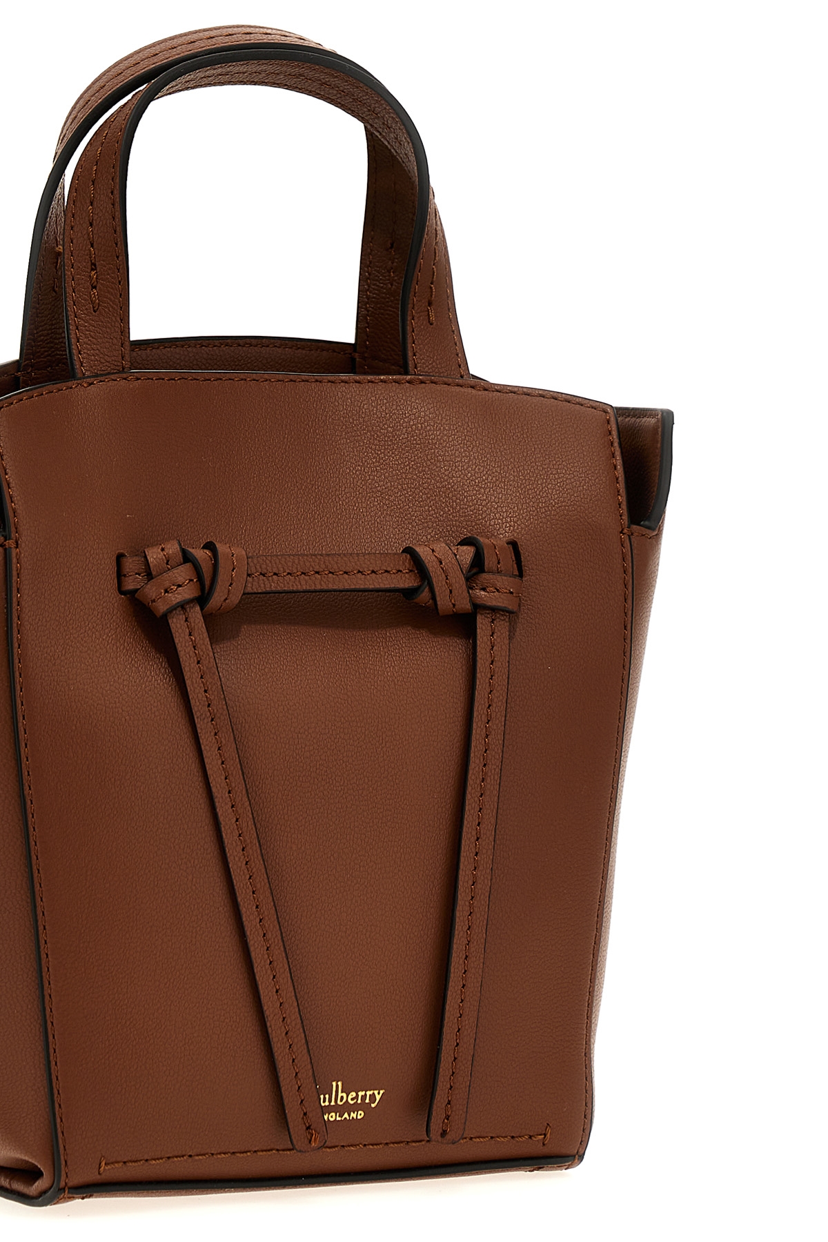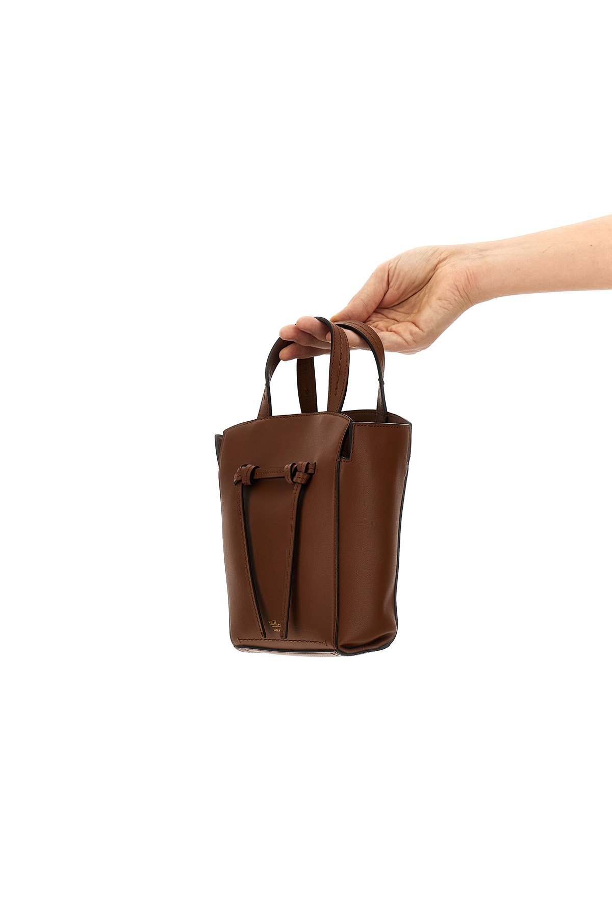 'Clovelly Mini' smooth leather handbag with front embossed logo, double handle, adjustable and removable shoulder strap, magnetic closure.