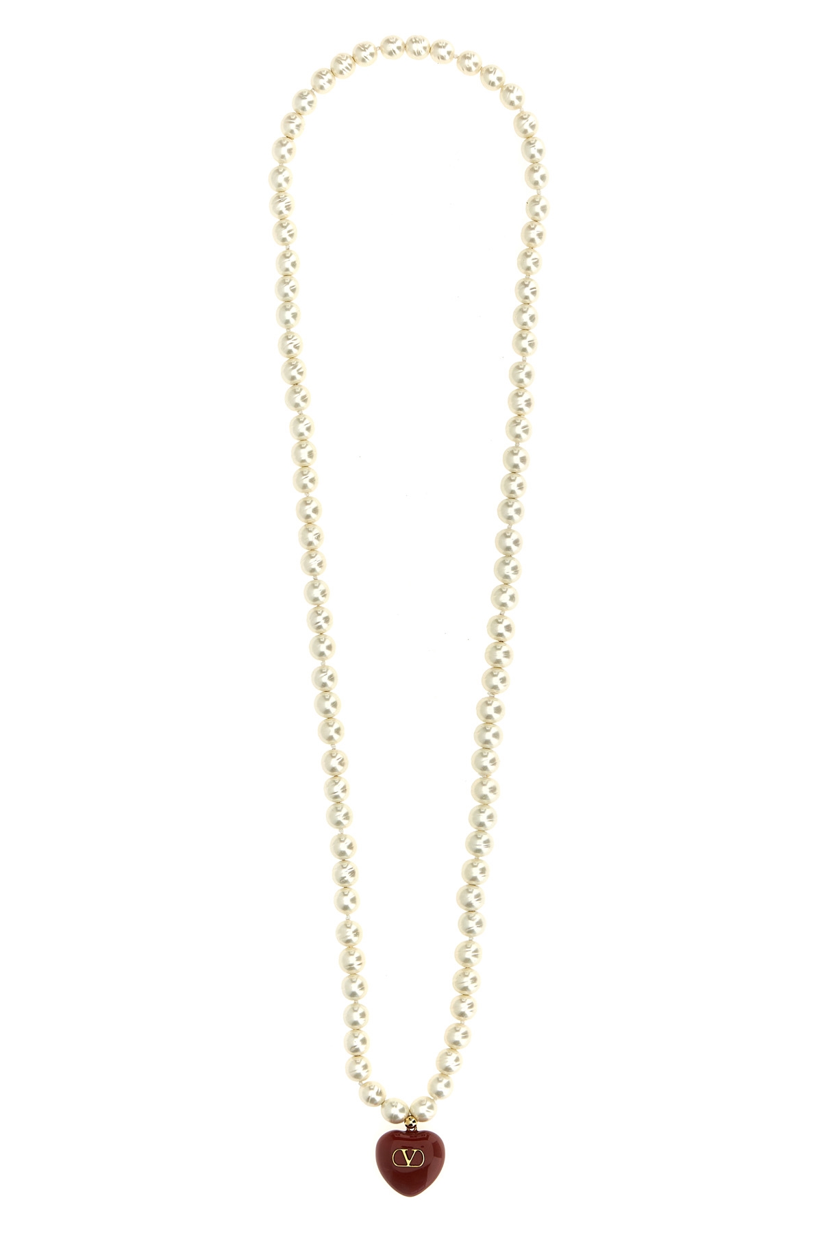 Coeur Royal' necklace in metal, enamel and baroque glass beads, pendant with metal Vlogo Signature detail, and clasp closure.